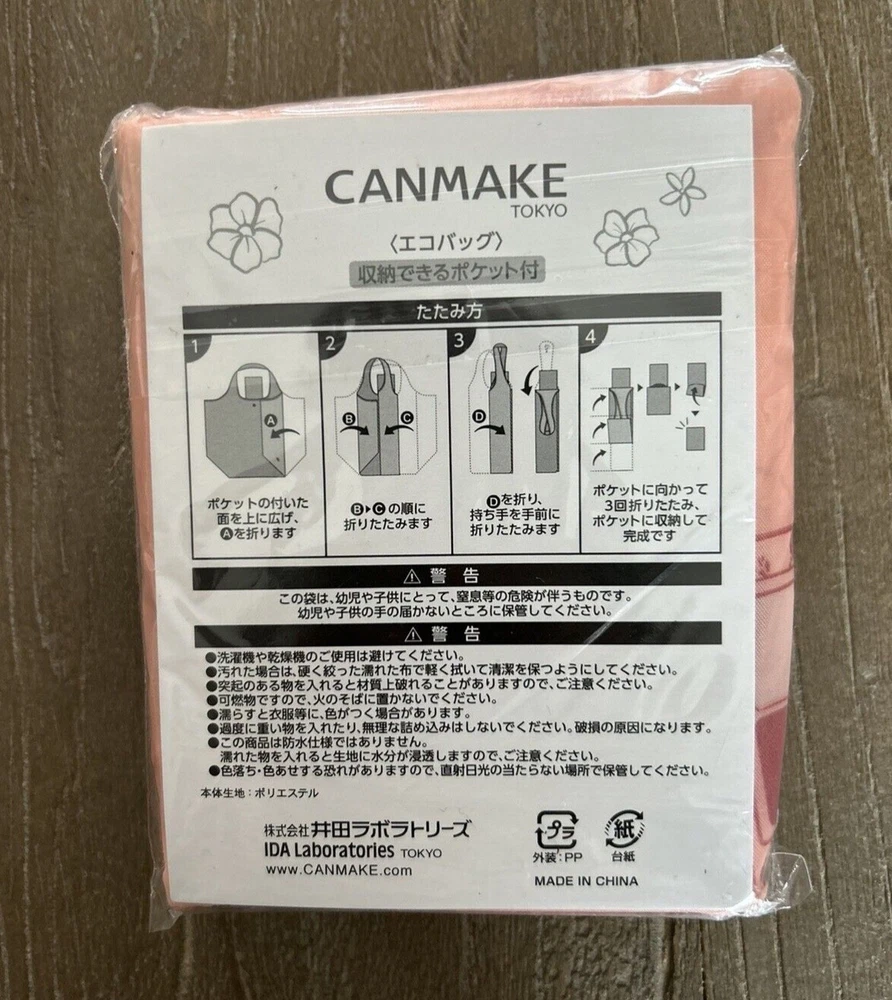 Kawaii RARE CANMAKE TOKYO JAPAN Eco Foldable Shopping Bag Nylon Reusable Tote With BONUS Washi Tape. NEW color: pink pattern: CANMAKE TOKYO cosmetics Bonus CANMAKE Washi Tape