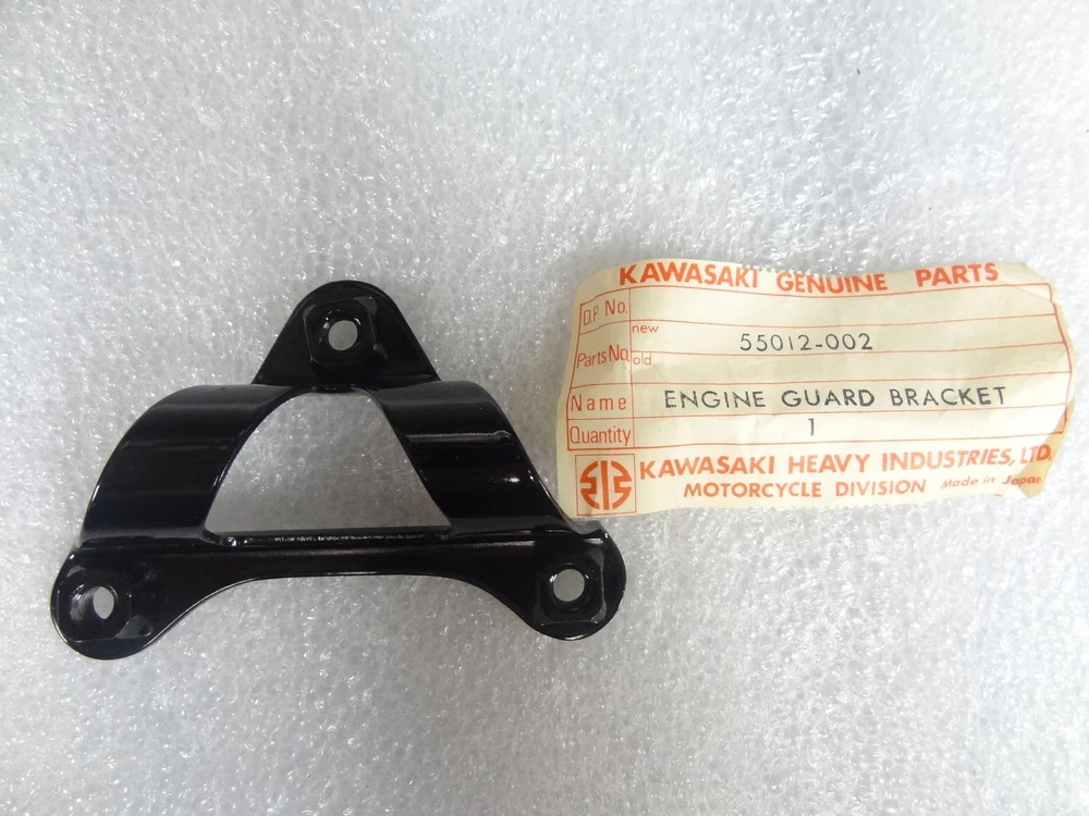 Up for sale: One (1) new/ NOS Kawasaki 55012-002 Engine Guard Bracket G4 KV G4TR KV100 Please research part number for specifications to ensure this will work for your model/year (most parts fit various models/years). Please do not ask for measurements of new parts. Some NOS parts show normal shelf wear from age. Part may not include identification slip, packaging may be damaged or missing. Please see pictures for additional details. Please note: payment is due within three (3) days of auction end. RETURNS: I offer a 100% return policy minus shipping. If I miss something in the description it is an honest mistake I WOULD NEVER INTENTIONALLY MISREPRESENT PARTS - IT JUST ISN'T WORTH IT. FEEDBACK: If there is a problem, please contact us before leaving a negative rating. Issues can always be worked out - we would rather fix issues than lose a customer. SHIPPING: Shipping charges and quotes include postage and handling and are an estimate based on the item weight and size using USPS or UPS rates. All packages are shipped USPS or UPS. Orders are shipped Monday through Friday, excluding holidays. We do combine shipping when possible (limited by size, weight and fragile nature of item). Please wait for an invoice to reflect shipping costs before sending payment or send a message prior to checking out. International shipping is offered; for quotes please send a message through the item. Please ensure your shipping address is correct in eBay before purchasing your items - items can only be shipped to an address listed in the buyer's account at the time of purchase. COMMUNICATION: Please ask questions using the e-bay messaging system. We do not see notes left in the order details or invoices, only messages sent through ebay. INTERNATIONAL BUYERS: If your country or shipping destination charges, demands, or imposes any customs tax, VAT, tariff, customs duty or levies, royalty, "handling", excise obligation, assessment, or any other charges that are due upon delivery you will accept sole responsibility for full payment as the buyer / recipient. GENERAL: Payment is expected within three (3) days after you commit to buy. Unpaid item reminders are automatically opened after the three day period. If you are unable to request a combined total during the checkout process please message us so we can make arrangements. We buy vintage motorcycles, parts and collections! Check out our store for all your NOS, restoration and classic part needs. Inventory is updated daily.