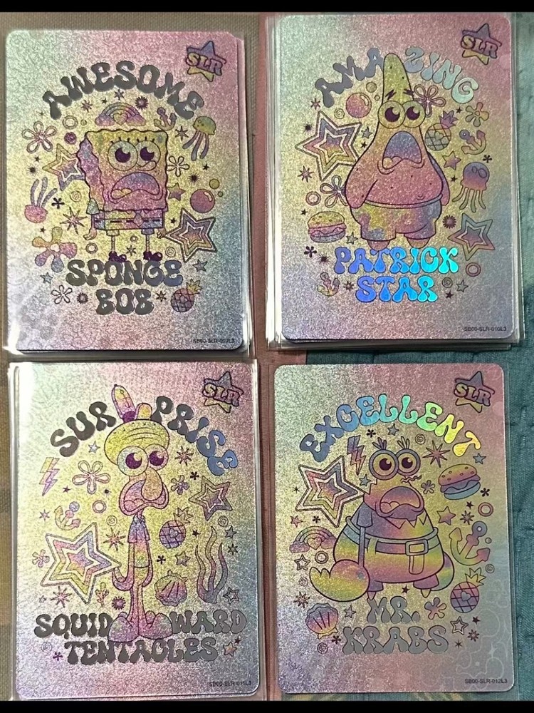 Kayou launcheed SpongeBob Squarepants' 25th anniversary theme collection card at 2024. There are 165 cards in the series, divided into 11 levels of rarity. Dream Gift Card: XR OR Exquisite Wonderland Card: OR Magic emanation Card: UGR Sweet & delicacies card: SCR Happy note card: STR Anniversary Card: SLR Colorful Holiday Card: SSR Draw Character Card: SR Changing Face Art card: FR Funny Feature card: R All the cards sold are almost new, look flawless on the surface, and default to minor damage or minor imperfections on display
