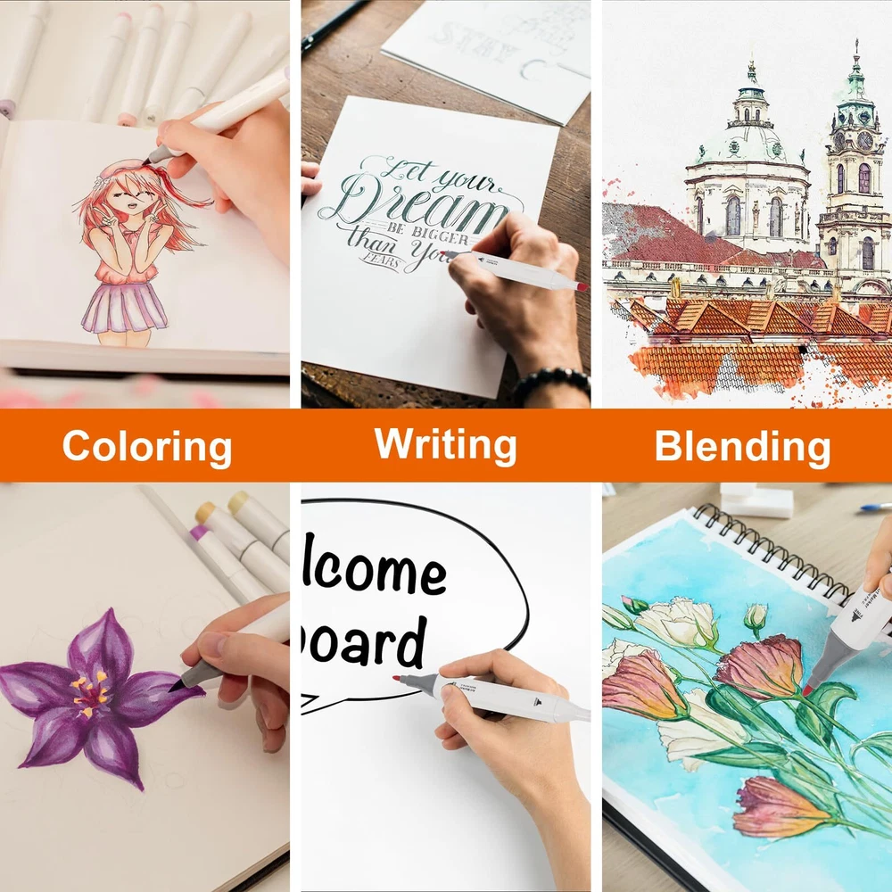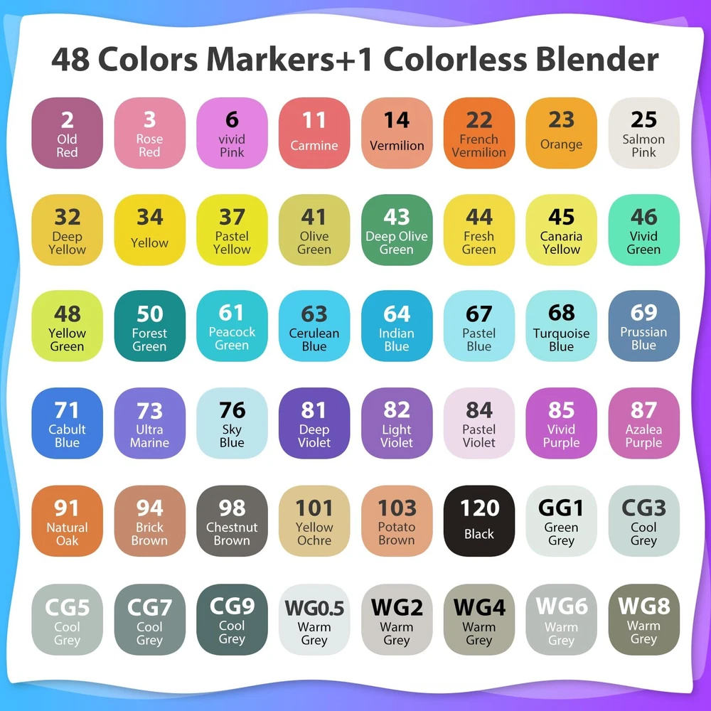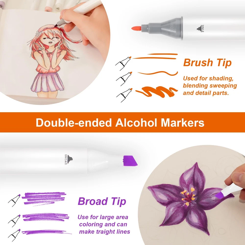 【SUPERIOR QUALITY MARKERS】Kebuye super quality permanent ink provides a rich colour saturation and allows the colors to be laid down clean, smooth and evenly. Perfect colour match every time you use them because the tips share a single ink reservoir. Alcohol markers are non-toxic, acid free 【48 BRIGHT COLORS】48 colors unique drawing markers bring your art to life. Includes all the colours artists need for drawing, writing,sketching,illustrating,shading,designing,rendering,manga,anime,adult coloring books and more.Alcohol markers are stored in a convenient storage box 【DUAL TIP IN ONE】Dual Tip Markers that allow you to create fine details with the fine tip(0.5mm-2mm) or broad, sweeping strokes (2mm-7mm) with the chisel tip and immerse yourself in art. Blend shades beautifully with alcohol markers sets that also reduce coloring lines, helping even beginners create professional effects with these art markers 【COLOR-CPDED CAPS】Artist markers color-coded caps allow for ease in organization and to identify colors quickly. you’ll never waste time searching for the perfect color.Ergonomic design makes working with these markers easy for a long time. Equipped with a beautiful black carrying case perfect for storing 【PERFECT GIFT】The alcohol-based ink used in these markers is safe for all-ages users, beginners, and professionals. These art markers make for a perfect gift idea for Christmas, Thanksgiving and school students. They come equipped with a beautiful form-fitting black case that is perfect for traveling and storing your paint markers