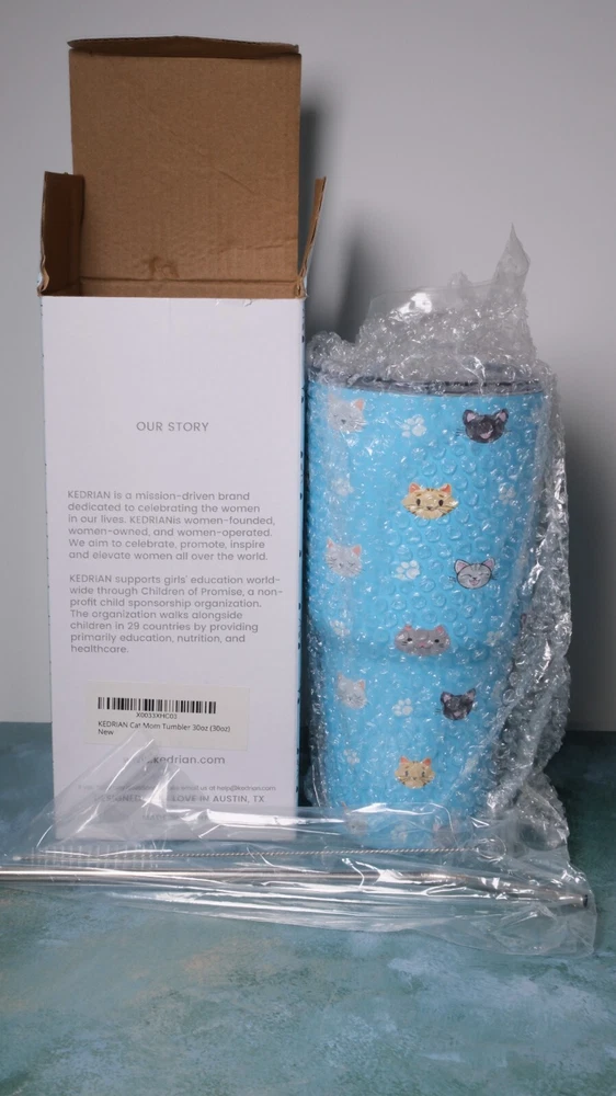 Kedrian Cat Mom Tumbler with Lid 30oz Stainless Steel Insulated Double Wall New in box, comes from a smoke free home.