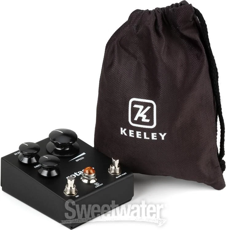 Swirling Tone Without the Heavy Lift Searching for a way to re-create the syrupy swirl and irresistible warmth of a classic rotary speaker? Then stomp on the Keeley Rotary. This aptly named guitar pedal leverages cutting-edge circuitry to deliver a full range of Doppler-esque textures, with true stereo operation to ensure impressively immersive results. This stellar stompbox boasts a straightforward layout with Blend, Drive, and Mid Boost controls, enabling you to dial in everything from a subtle seasick warble to a full-on saturated sonic whirlwind, with three different EQ curves for a perfectly tailored sound. You also get a Slow-Fast footswitch, bolstered by a large Speed knob, providing you with fine-tuned control over the simulated speaker’s rotation. Moreover, the Rotary lets you easily toggle between True and Buffered Bypass modes, facilitating seamless integration with the rest of your rig. Finally, you get an optional pulsing LED, adding a touch of Sweetwater is an Authorized Keeley Dealer Genuine New Item Sweetwater's 2-year warranty* Keeley Rotary Simulator Pedal Stereo Rotary Speaker Simulator Guitar Pedal with Blend, Drive, Speed, Mid Boost, and Slow-Fast Controls Swirling Tone Without the Heavy Lift Searching for a way to re-create the syrupy swirl and irresistible warmth of a classic rotary speaker? Then stomp on the Keeley Rotary. This aptly named guitar pedal leverages cutting-edge circuitry to deliver a full range of Doppler-esque textures, with true stereo operation to ensure impressively immersive results. This stellar stompbox boasts a straightforward layout with Blend, Drive, and Mid Boost controls, enabling you to dial in everything from a subtle seasick warble to a full-on saturated sonic whirlwind, with three different EQ curves for a perfectly tailored sound. You also get a Slow-Fast footswitch, bolstered by a large Speed knob, providing you with fine-tuned control over the simulated speaker’s rotation. Moreover, the Rotary lets you easily toggle between True and Buffered Bypass modes, facilitating seamless integration with the rest of your rig. Finally, you get an optional pulsing LED, adding a touch of visual flair to your performance. Melding vintage-inspired modulation with contemporary precision, the Rotary captures the soul of a classic rotary speaker — no heavy cab required. Spin your tone with exacting control When you’re craving classic rotary speaker sounds, the Rotary pedal certainly delivers, combining rich, modulated textures with authentic-sounding, tube-style overdrive. That said, this stompbox’s streamlined layout gives you way more control than you would have with a physical rotating speaker. The Blend knob lets you dial in the perfect mix between your dry and wet signals, whether you’re aiming for subtle coloration or absolute cacophony. The Drive knob infuses your signal with glorious harmonic saturation, adding depth and character to your tone. Finally, the Mid Boost switch provides you with three different EQ curves to fatten up the modulation effect. The magic of rotary motion at your feet Our favorite aspect of the Keeley Rotary here at Sweetwater is how much control you get over the pedal’s simulated rotary motion. To start, you get a Slow-Fast switch, enabling you to select between two distinct rotation speeds for slow chorus-like modulation or a fast, tremolo-esque sound. You can also instantly slow down the rotation for an attention-grabbing braking effect, adding a dynamic touch to your performance. Additionally, the Rotary lets you adjust the speed transition between slow and fast for smooth or dramatic soundscapes. Lastly, the large Speed knob enables you to instantly control the rotation speed for intuitive, on-the-fly adjustments. Keeley Rotary Features: A guitar pedal that re-creates the syrupy swirl and irresistible warmth of a classic rotary speaker Cutting-edge circuitry delivers a full range of Doppler-esque textures Stereo I/O with true stereo operation Blend knob dials in the perfect mix between your dry and wet signals Drive knob infuses your signal with glorious harmonic saturation Mid Boost switch provides you with 3 different EQ curves to fatten up the modulation FX Slow-Fast switch selects between 2 distinct rotation speeds Large Speed knob enables instant control over the rotation speed for intuitive, on-the-fly adjustments Easily toggle between True and Buffered Bypass modes Optional pulsing LED adds a touch of visual flair to your performance Specification Detail Pedal Type Rotary Speaker Inputs 2 x 1/4" Outputs 2 x 1/4" Power Source 9V DC power supply (sold separately) Height 2.6" Width 3.9" Depth 4.9" RETURN INFORMATION We want you to be completely happy with your purchase from Sweetwater. If you are not satisfied with your product, you may return it for a refund of the purchase price within 30 days. If your purchase was eligible for Free Shipping, the shipping cost will be deducted from your credit or refund. Returns must be in the complete and original packaging with all accessories and complete documentation (Owner's Manual, warranty card, quick start guides, etc.), show no signs of wear or use, and include a Return Authorization number or be subject to a restocking fee. Fast, FREE Shipping! Nearly every order received by 3PM Eastern ships the SAME DAY! FREE shipping to lower 48 states. Our central location reaches most states in 1-4 business days 99.95% warehouse accuracy We are proud to provide some of the fastest turnaround times on eBay. We use FedEx or UPS for most items, and USPS for smaller items. Residents of Hawaii, Alaska, and Puerto Rico should contact us for a shipping quote. PLEASE NOTE: We cannot ship large items to PO boxes, please provide an alternate address. If you have questions, feel free to contact us. Buy with confidence! Sweetwater's been selling on eBay since 2001, with 99.9% positive feedback! More than 30 years in business World-class customer service Fast, FREE shipping 