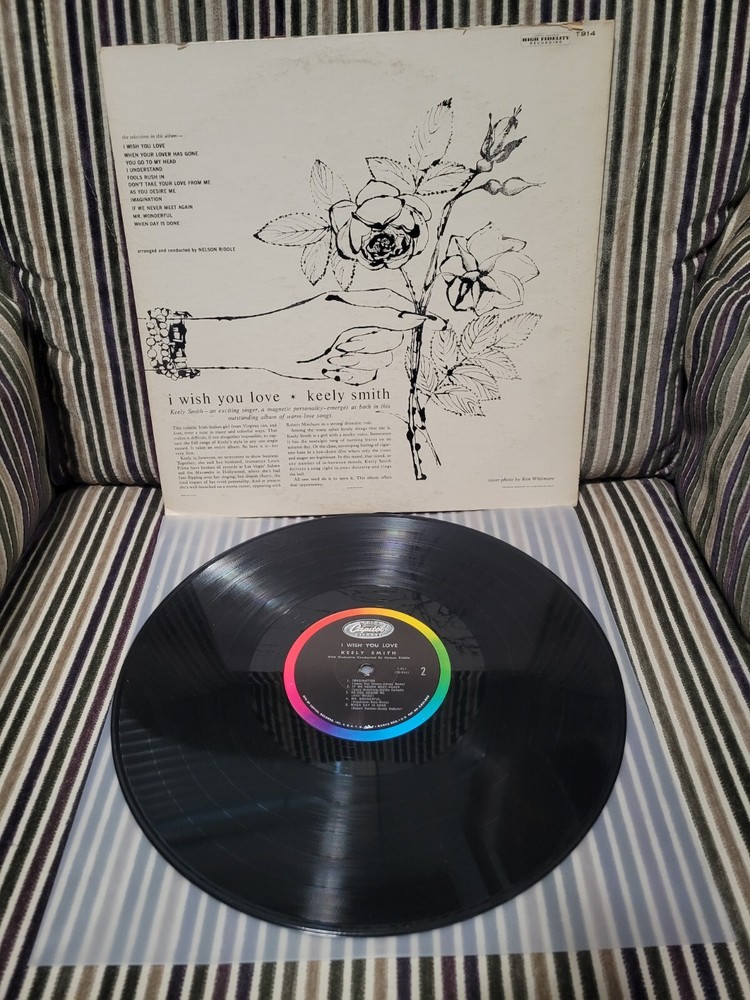 Format: Record Country/Region of Manufacture: United States Release Year: 1958 Edition: First Edition Artist: Keely Smith Conductor: Nelson Riddle Speed: 33 RPM Genre: Jazz, Pop Language: English Record Size: 12" Fidelity Level: High-Fidelity Era: 1950s Case Type: Cardboard Sleeve Release Title: I Wish You Love Features: Original Cover Type: LP Sleeve Grading: Very Good Plus (VG+) Inlay Condition: Excellent (EX) Record Label: Capitol Records Material: Vinyl Record Grading: Excellent (EX) Color: Black Style: Vocal Jazz, 1950s, Big Band & Swing