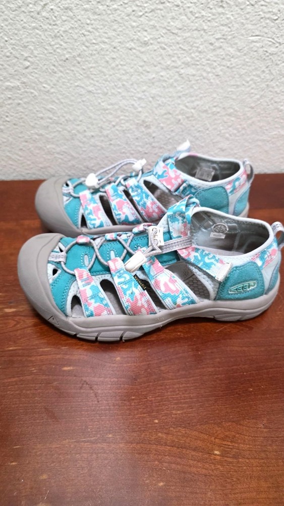 Keen Newport H2 Kids Sandals Size 5 Teal & Pink Camo Print Durable Rubber