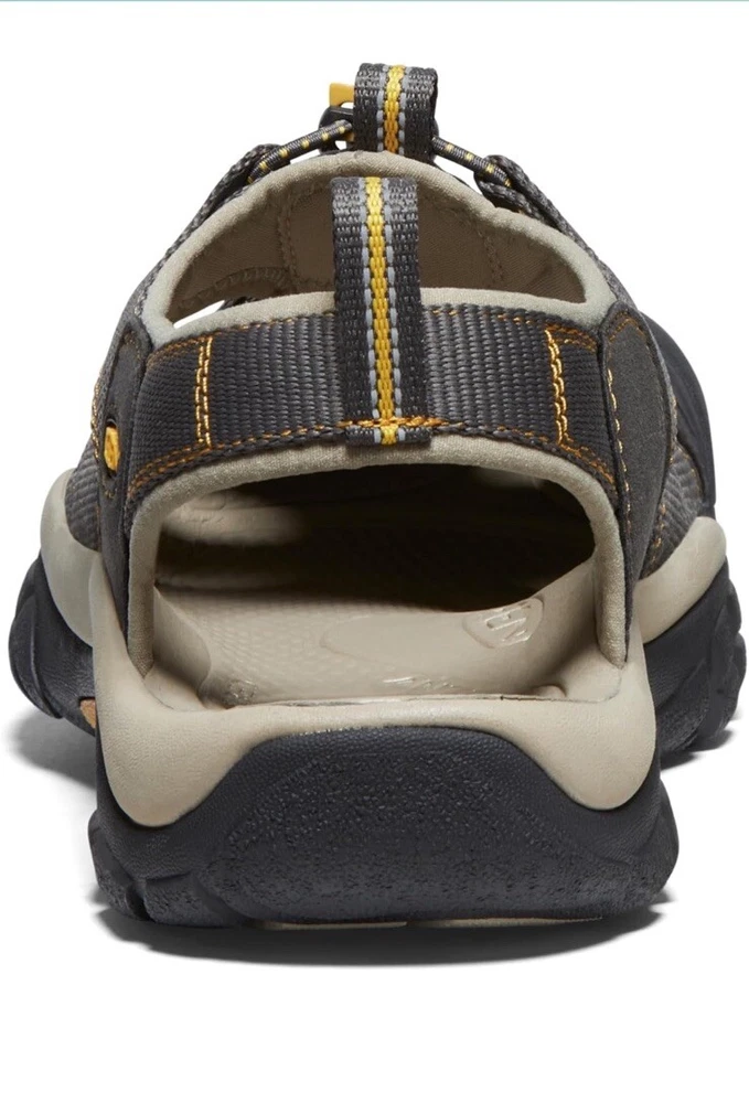 The Keen Newport H2 Mens Sandals are slip-on sandals designed for travel and casual occasions. They feature a gray and yellow trim color with a solid pattern and the KEEN logo as an accent. The sandals are waterproof and have a rubber outsole and insole for comfort. The upper material is synthetic and the lining material is synthetic. The sandals are perfect for outdoor activities in the summer, fall, or spring. They are available in size 8 and have a standard shoe width. The sandals are part of the KEEN Newport product line and are made in China.