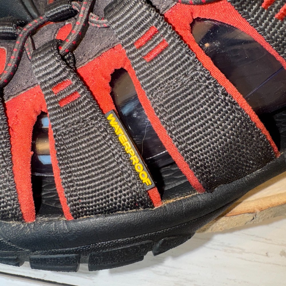 The Keen Newport H2 Shoes in Men's size 7 are versatile outdoor sandals perfect for hiking, water activities, and casual wear. These gray and red slip-on sandals feature a waterproof synthetic upper material and a rubber outsole for durability. With a drawstring closure and standard shoe width, these sandals are comfortable and practical for outdoor adventures in summer, fall, and spring. The KEEN brand is known for its quality footwear, making these sandals a reliable choice for any outdoor enthusiast.