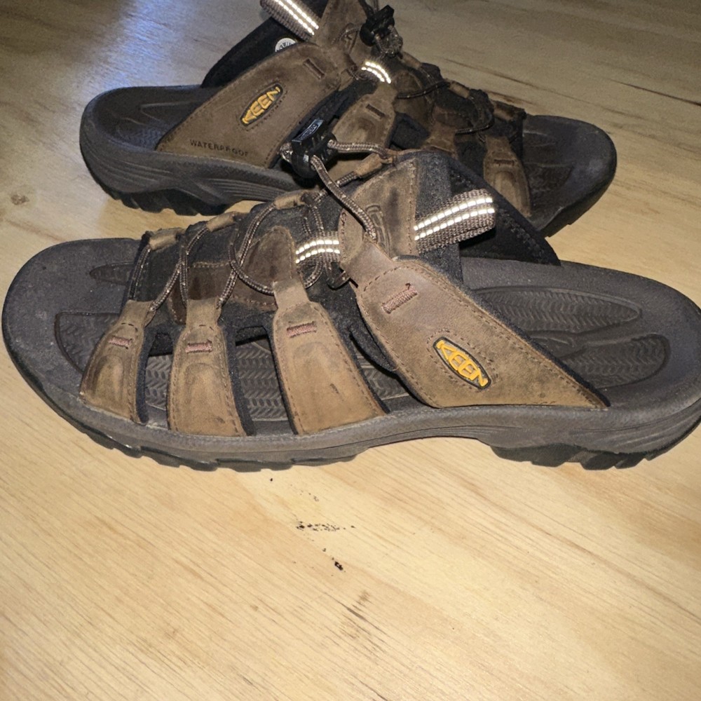 Love these Keen Targhee slides! Super comfy right out of the box, great for quick errands or outdoor adventures. The waterproof feature is a lifesaver—no soggy feet after unexpected puddles. Size 11 fits perfectly, just like my other Keen shoes. Super sturdy with great traction, and the brown color goes with everything. Shipped crazy fast, exactly as pictured. Definitely recommend!