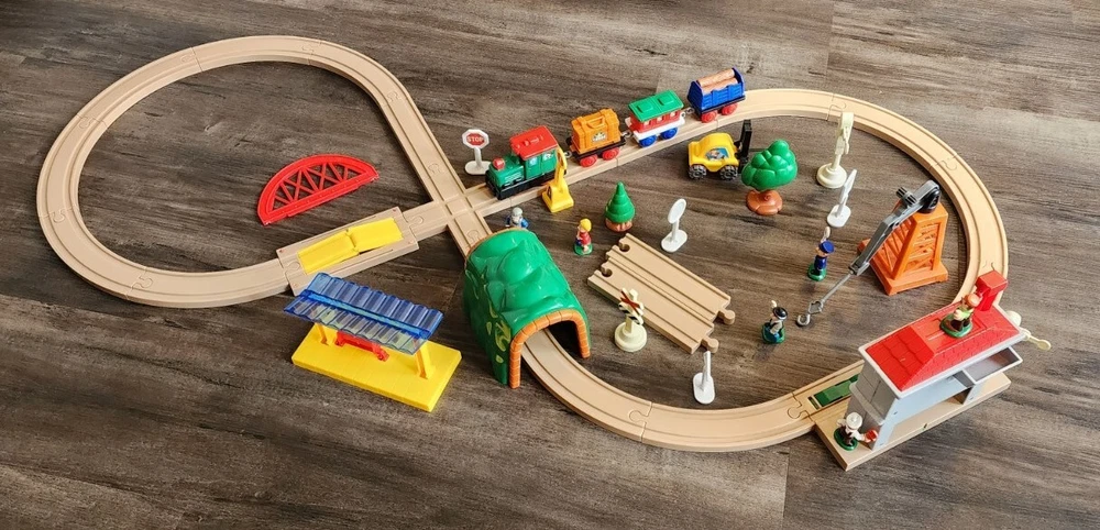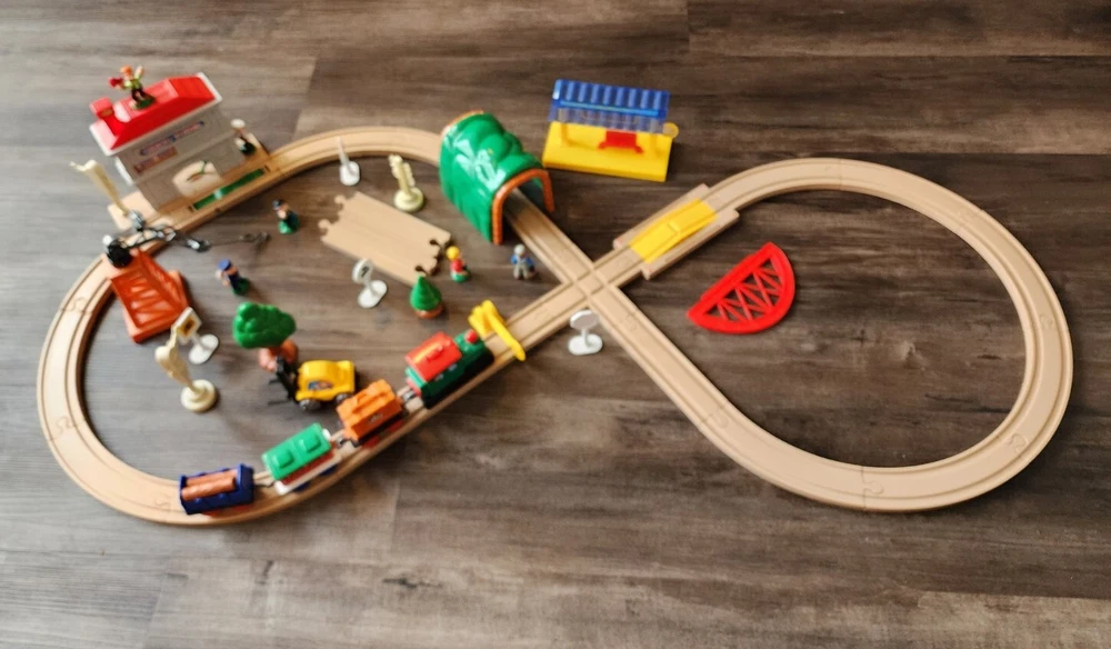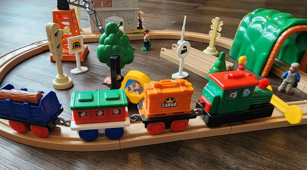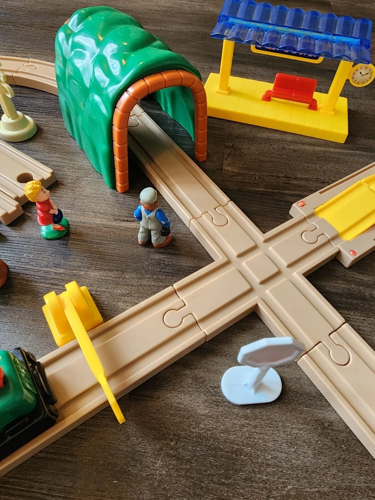 Keenway Plastic Trains and train Track, People, And Accessories vintage, comes with trains, tracks, people trees ect. Good condition, but sold As is no returns accepted as it's vintage, the only thing wrong is one of the rails is broken picture is shown