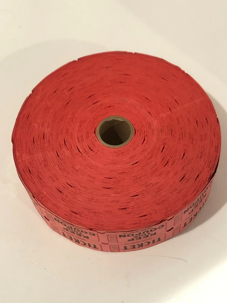 Keep this Coupon Ticket Double Roll Red 2000, Raffle Tickets, NEW Like new condition - never used, but outer layer has some minor wearing. Keep this coupon tickets. Indiana ticket co. 2000 tickets. Red color. Double roll. Sold as is. See pictures for additional reference of item condition. Shipped via USPS or best way upon receipt of payment.