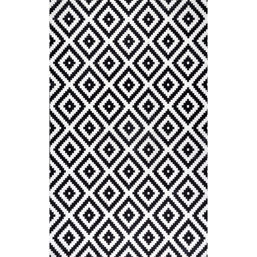 Kellee Machine Washable Modern Diamond 3x5 Ultra Thin Black Area Rug