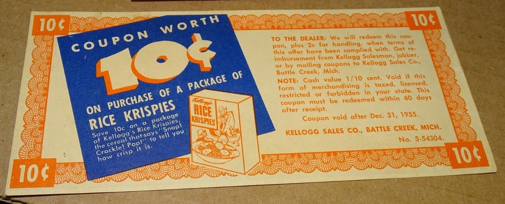 the Rice Krispies coupon is dated 1955 (2.75 x 6") the ink blotters are not dated but look like 1930s/1940s (3.75 x 5.5") Code JSB251