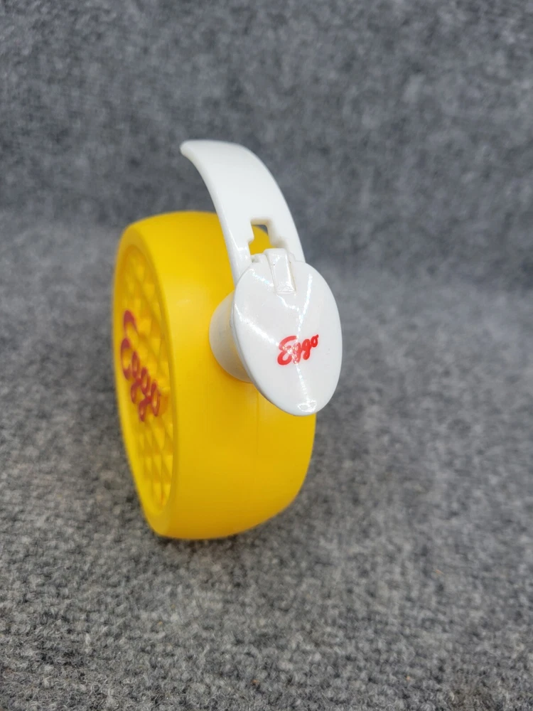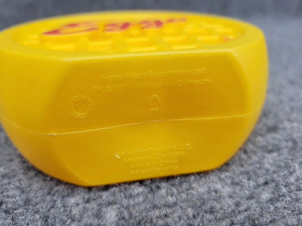 This Kellogg's Eggo Waffle Warm and Pour Waffle Shaped Syrup Dispenser is a must-have for any collector of vintage advertising items. The container is designed in the shape of the iconic Eggo waffle and features the classic red and yellow colors of the brand. The dispenser is perfect for holding your favorite syrup or other condiments, and its original and authentic design makes it a great addition to any collection. Whether you are a fan of Kellogg's or just love collecting unique advertising items, this Eggo Waffle Warm and Pour Waffle Shaped Syrup Dispenser is sure to impress. Its compact size and easy-to-use design make it a great choice for any kitchen or collection. Add it to your collection today and enjoy the nostalgia of this classic Kellogg's item.