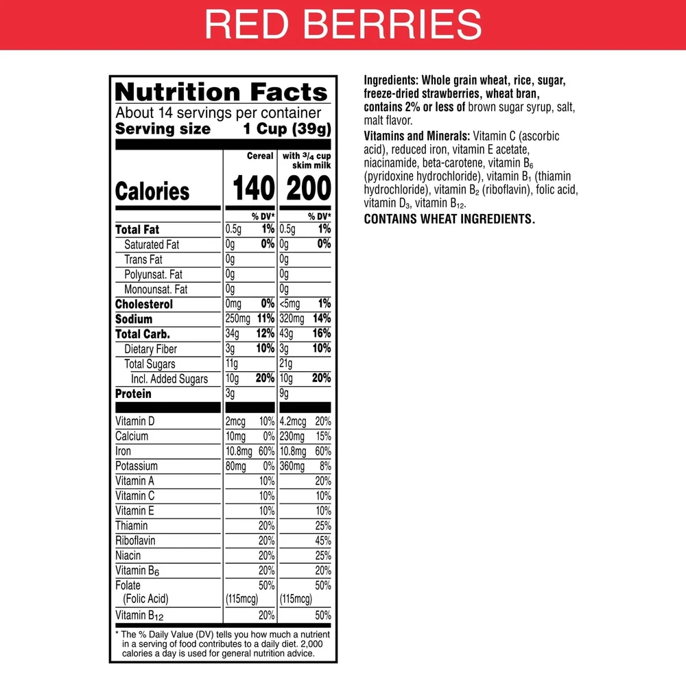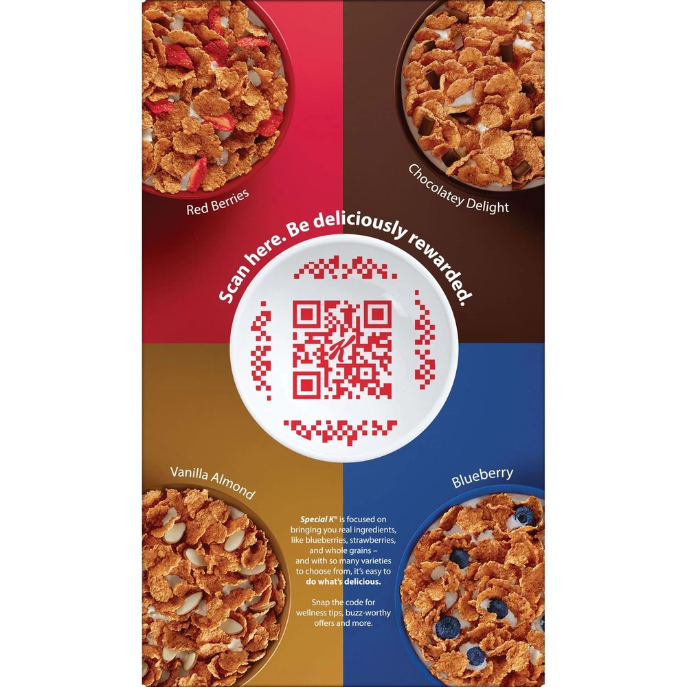 Kellogg's Special K Breakfast Cereal, Family Breakfast, Fiber Cereal, Giant Size, Red Berries, 19.2oz Box (1 Box) Description Start your day off right with the simple goodness of Kellogg's Special K Red Berries cereal, a deliciously crafted, wholesome cereal that loves you back with each healthy spoonful. This filling cereal is bursting with real strawberries and made with lightly sweetened rice and wheat flakes to energize you for the day ahead. Just as nutritious as it is delicious, this breakfast cereal is made with whole grain, is a good source of fiber and 11 vitamins and minerals to help keep you going strong; Take a deliciously satisfying meal or snack with you wherever you go. Whether you enjoy your cereal at home, work, school or the gym, you'll love the sweet and satisfying taste. Go ahead, pop open the box, pour over your favorite milk, and enjoy Kellogg's Special K Red Berries cereal that lets you feed your strength with each irresistible bite. Features: Crunchy, lightly sweetened, healthy cereal that's bursting with strawberries for a delicious bite in every satisfying spoonful A great tasting, convenient family breakfast with wholesome rice and wheat flakes combined with the simple goodness of real sliced strawberries Contains 15g whole grain per serving; Good source of fiber and 11 vitamins and minerals; Low fat; Kosher Pareve; Contains wheat ingredients A low-fat cereal to enjoy with your favorite nut or dairy milk; Makes a tasty snack at work or as a quick dinner Includes 1, 19.2oz giant-size box of ready-to-eat Kellogg's Special K Red Berries cereal; Packaged for freshness and great taste Product Details: Brand: Special K Age Range (Description): Adult Item Form: -- Other -- Specialty: Dairy Free, Kosher Certified Unit Count: 1 Count Package Dimensions : 13.35 x 7.83 x 2.48 inches; 1.36 Pounds UPC : Manufacturer : Kellogg's Country of Origin : USA Handling We will ship all orders within 3 business days of payment. Delivery We do not ship outside of the Continental US. Feedback We take our reputation seriously, we buy and sell online, so we understand the value of trust. If you are unsatisfied with your order, please contact us and we will work with you to resolve it to your satisfaction.