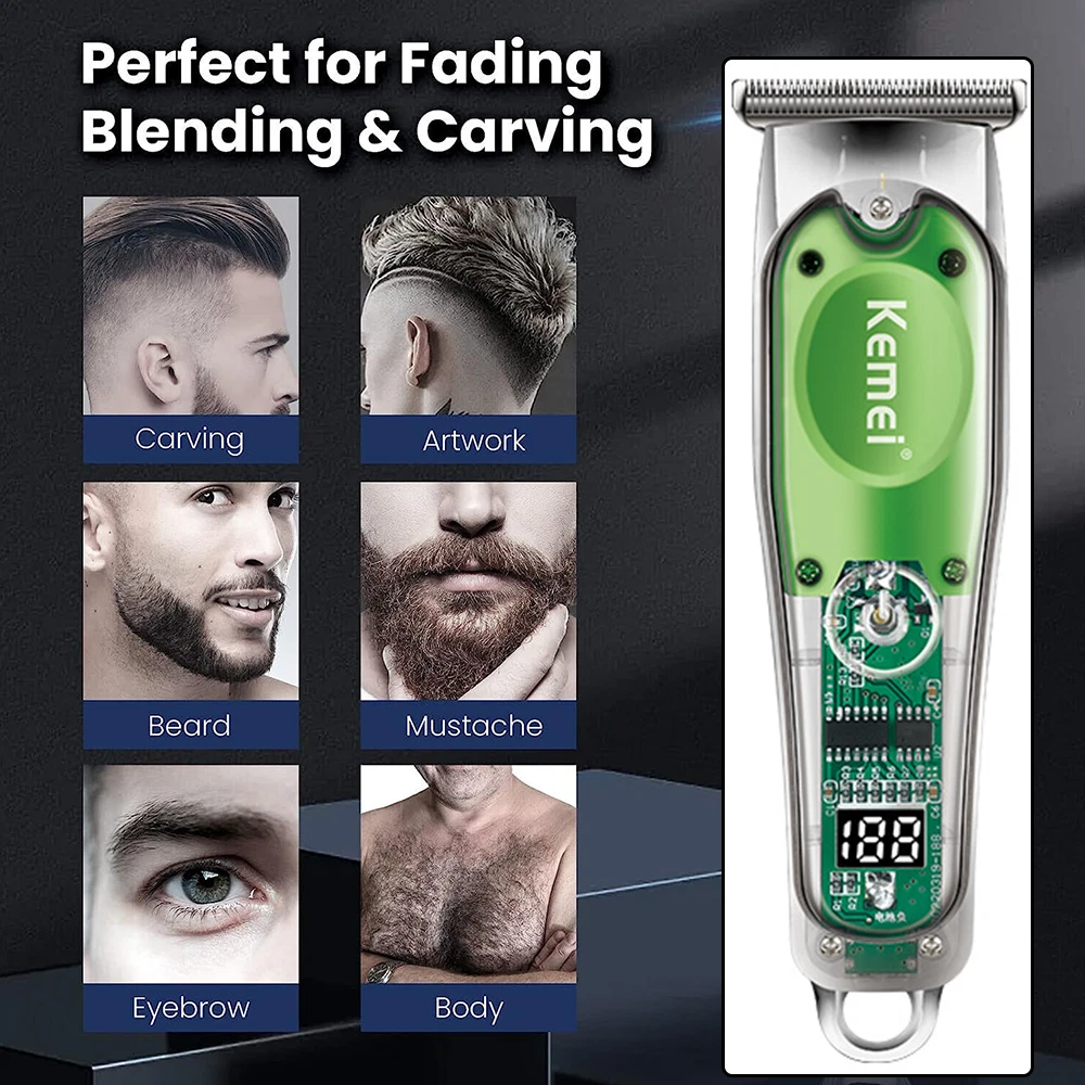 Kemei 0mm Rechargeable Cordless Hair Trimmer Clipper for Precision Haircuts