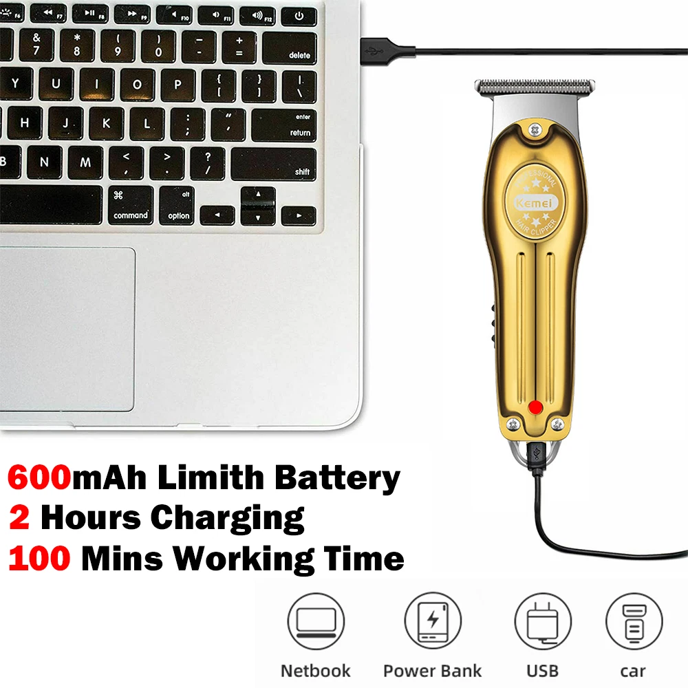 Describe: Professional barber tool, or use at home. Stainless steel blade, avoid skin irritation, very hot, does not pull hair, blade width 45mm. Low noise, high power. Ergonomic and stylish handle design, comfortable to hold and operate. Note: Due to air transport restrictions, liquids cannot be transported, so oil bottles are not included in the package, please note. Due to manual measurement, there is a size error of about 1-5mm. Due to different monitor calibrations, the colors of the items shown in the photos may appear slightly different on your computer monitor. Product parameters : Brand: Kemei Model: KM-679 Product name: hair clipper Color options: Gold Charging method: USB charging Battery Weight: 600mAh Voltage/Power: 3.7V/5W Weight size: 125g/4*13.8cm Use time: 2 hours of charging, 100 minutes of use Product acessorie s : 1*Host 1*protective cover 3*limiting comb (1/2/3)mm 1*USB cable 1*Cleaning brush