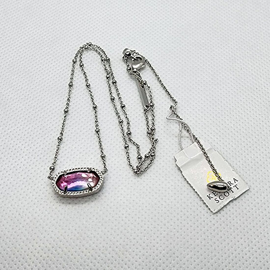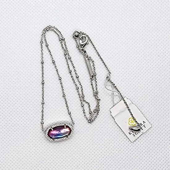 Kendra Scott Elisa Satellite Pendant Necklace in Watercolor illusion / Silver Everyone's favorite necklace is reimagined with a chic new chain in the Elisa Satellite Silver Pendant Necklace in Watercolor illusion Rhodium Plated Over Brass Size: 0.63"L X 0.38"W pendant, 18" chain Adjustable lobster claw