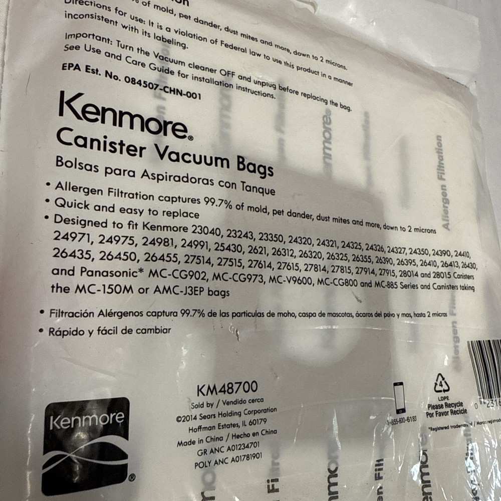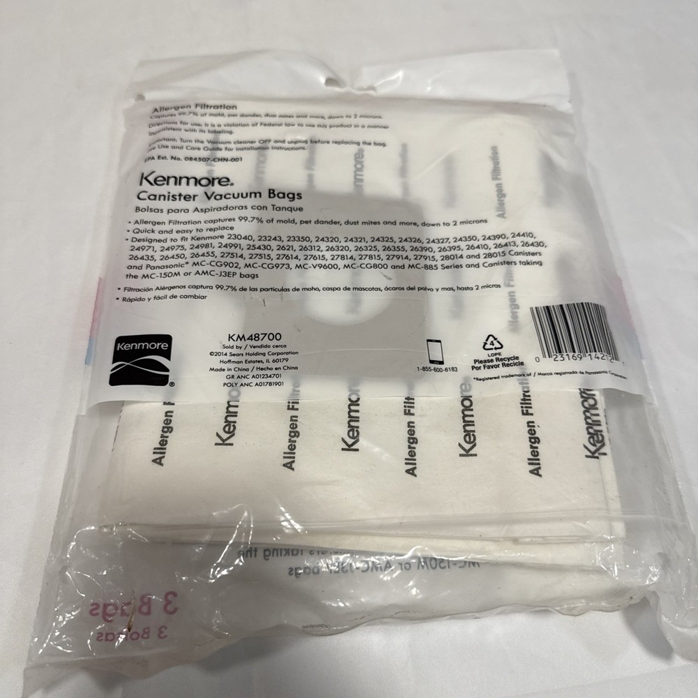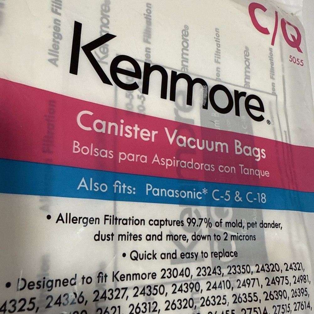 The Kenmore 20-54321 Vacuum Cleaner Bag C/Q Bags 5055 in a 3 pack is designed specifically for Kenmore vacuum cleaners, including models Q 5055 Km48700, 50558, 50557, and 5055. These bags are compatible with the Kenmore brand and are designed to effectively capture debris and allergens, ensuring a clean and healthy environment. With this convenient 3 pack, users can easily replace their old bags and continue to maintain the efficiency of their Kenmore vacuum cleaner. See photos for additional compatibility. A1