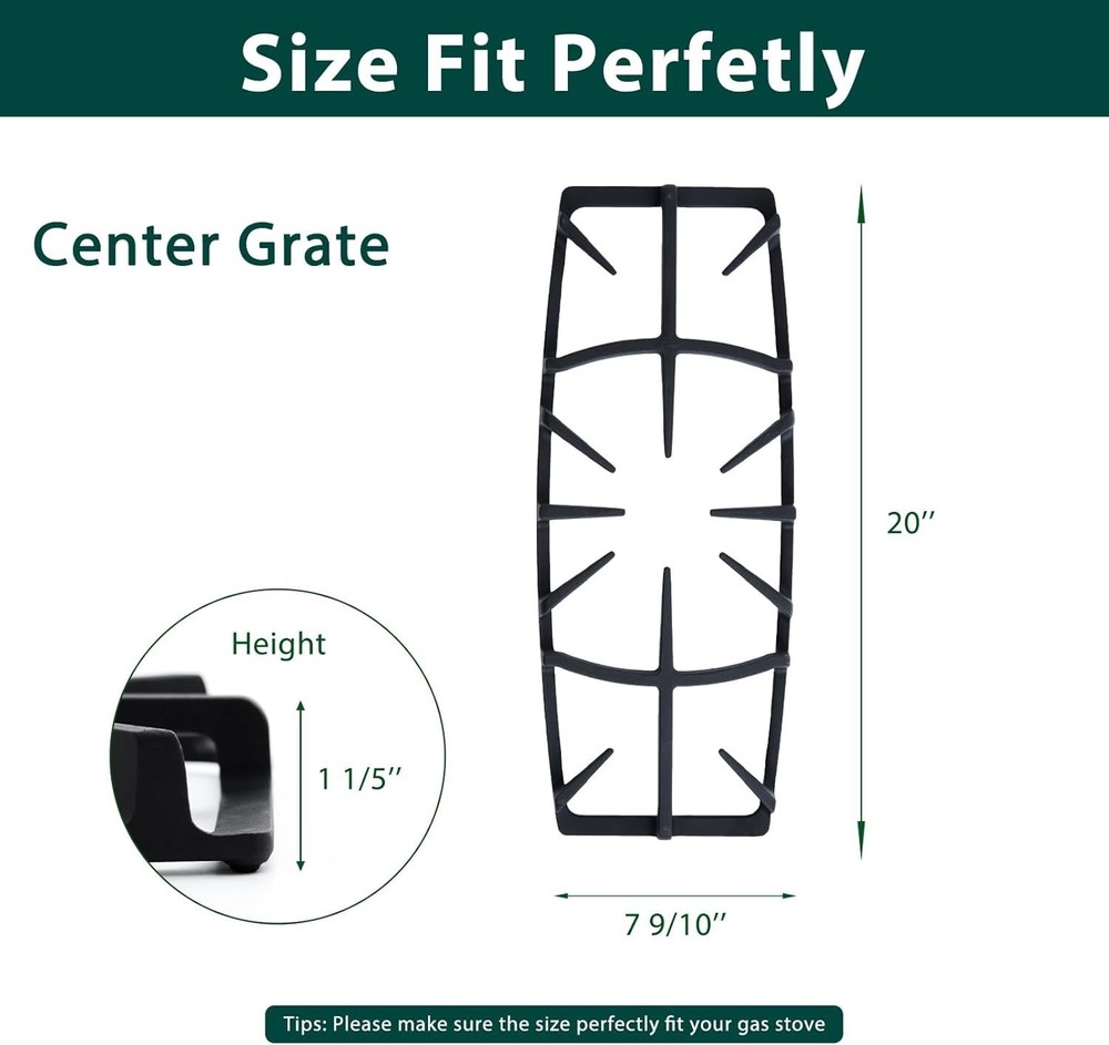A00263801 Stove Grates Replacement Parts for Kenmore Gas Burner Grates Kenmore Oven Grates Surface Range Grates Stove Top Grates Cast Iron Cooktop Grates Middle Center Stove Top Grates Parts 1 Pcs Dimension and Package: 20’’ x 7 9/10’’ x 1 1/5’’ per Kenmore Frigidaire burner grates, Total 1 pack for Kenmore gas stove grates replacement cooktop grate (Please make sure the Kenmore gas stove burner grates size perfectly fit your gas stove rack) Material of Gas Stove Parts: The Kenmore Frigidaire surface grate for gas stove burner grates is made of upgraded matte enamel cast iron, giving the Kenmore range grate more durable, heat-resistant, perfect match, easy clean and long-lasting, provide a seamless cooking experience 【Gas Stove Replacement Parts for Range Parts Number】 Kenmore A00263801, 5304492146, AP6036421, WCI-A00263801, 5304492047, PS11770807, PD00033169, PD00033169, 5304492048, 5304492147, 4456993, PS11770807, EAP11770807, A002637 and more kenmore gas stove grates replacement, a00263801 range surface burner grate set 【Fits for Kenmore Gas Stove Parts】 Kenmore 790.74232314, 790.74233310, 790.74233311, 790.74233313, 790.74233314, 790.74233315, 790.73433314, 790.73439310, 790.73439312, 790.73439313, 790.73439314, 790.74043310, 790.74132310, 790.74132311, 790.74132312, 790.74132313, 790.74134310, 790.74134311 and more kenmore burner grate Protect Kenmore Grate and Stove Surface: The Kenmore Frigidaire burner grate design by grate rubber feet, protect them from scratches and reduce noise, our kenmore burner grates for gas stove have strong adhesion to balance the grates foot on the rubber stove top and reducing noise, giving your a safe and quiet cooking environment Non-stick and Easy to Clean: Nonstick helps with cleaning your burner grate for Kenmore gas stove parts should be a relatively simple process. kenmore range grate could be cleaned by dishwasher or wipe with a dampened cloth with warm water and detergent or cleaned with a cleaning powder such as baking soda in warm water Distribute Heat Evenly: The Kenmore cookware set distributes heat evenly to prevent food from sticking or burning. It also provides a large space for a variety of cooking scenarios and utensils Tips: Ensure that the stove grates is turned off and has cooled down before starting the removal process. This will prevent any accidental burns or injuries. And if you are unable to confirm that the Kenmore burner grate kit for stove top grates is compatible with your Kenmore grate griddle, please contact us . We offer FREE shipping on all orders! . We ship within Five business days of payment, usually sooner. . We use a selection of shipping services such as UPS, FedEx, USPS etc. . We only ship to the lower 48 states, no APO/FPO addresses or PO Boxes allowed. . Local pickups and combined shipping options are not provided at this time. . Your satisfaction is a wonderful reward for our efforts. Please assist us by leaving a positive review if you feel pleased with our service. . In the event that you encounter any difficulties related to your order, please do not hesitate to reach out to us directly through the Messaging system on the Ebay platform. Kindly consider opening a COMPLAINT or a RETURN REQUEST as a last resort, only after all other possible measures have been attempted and we have been unable to provide you with assistance. . We will get in touch with you within 24 hours and make every effort to ensure your satisfaction. . Please rest assured of our service quality.