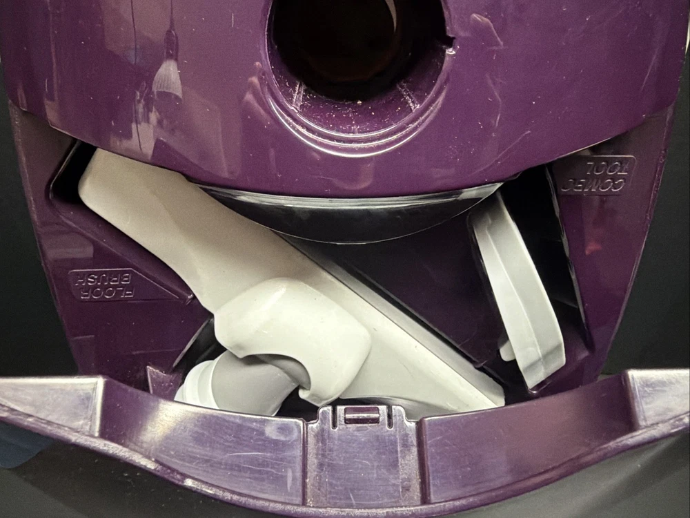 Tested & working. Cord retractor works fine. Has some heavy wear and test on it, mainly marks and scratches. Bag looks fairly new. Comes complete with all the attachments inside. Please see all pictures for condition.