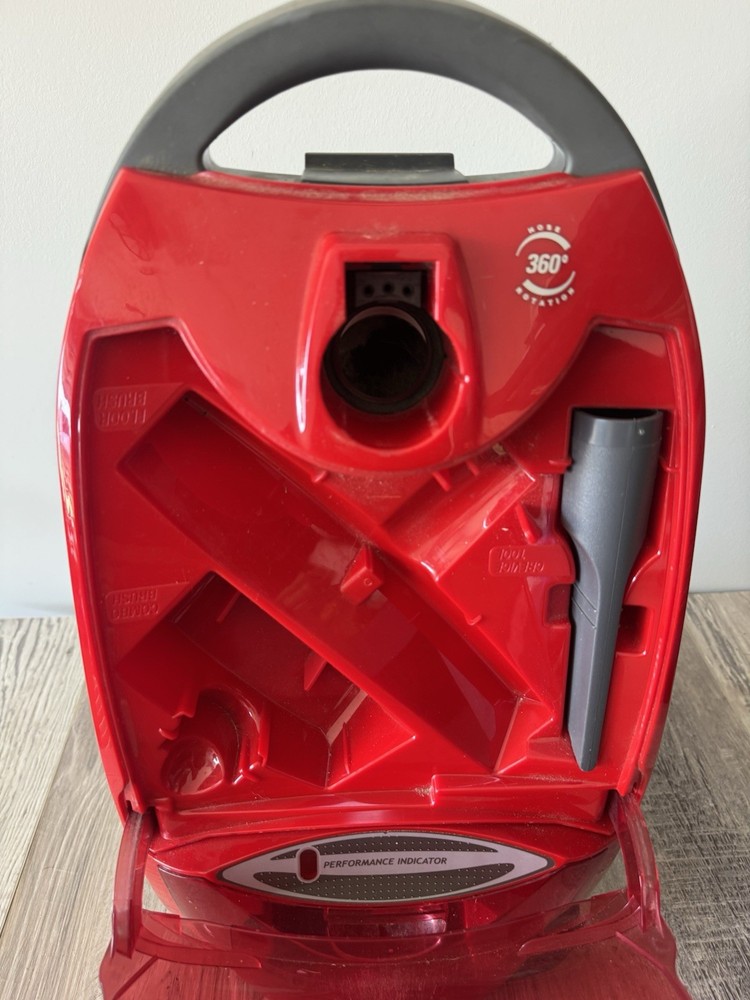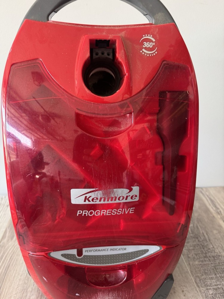 The Kenmore Progressive 116 True Hepa Filter Canister Vacuum Cleaner is a high-quality, bagged vacuum cleaner that features a HEPA filter for efficient cleaning. This red canister vacuum cleaner comes with a power hose included and has features such as cord rewind, portability, carpet cleaning capability, a bag change indicator, and an ergonomic handle. With a corded voltage of 120V, this Kenmore 116 model is a reliable and powerful choice for maintaining a clean and healthy home environment.