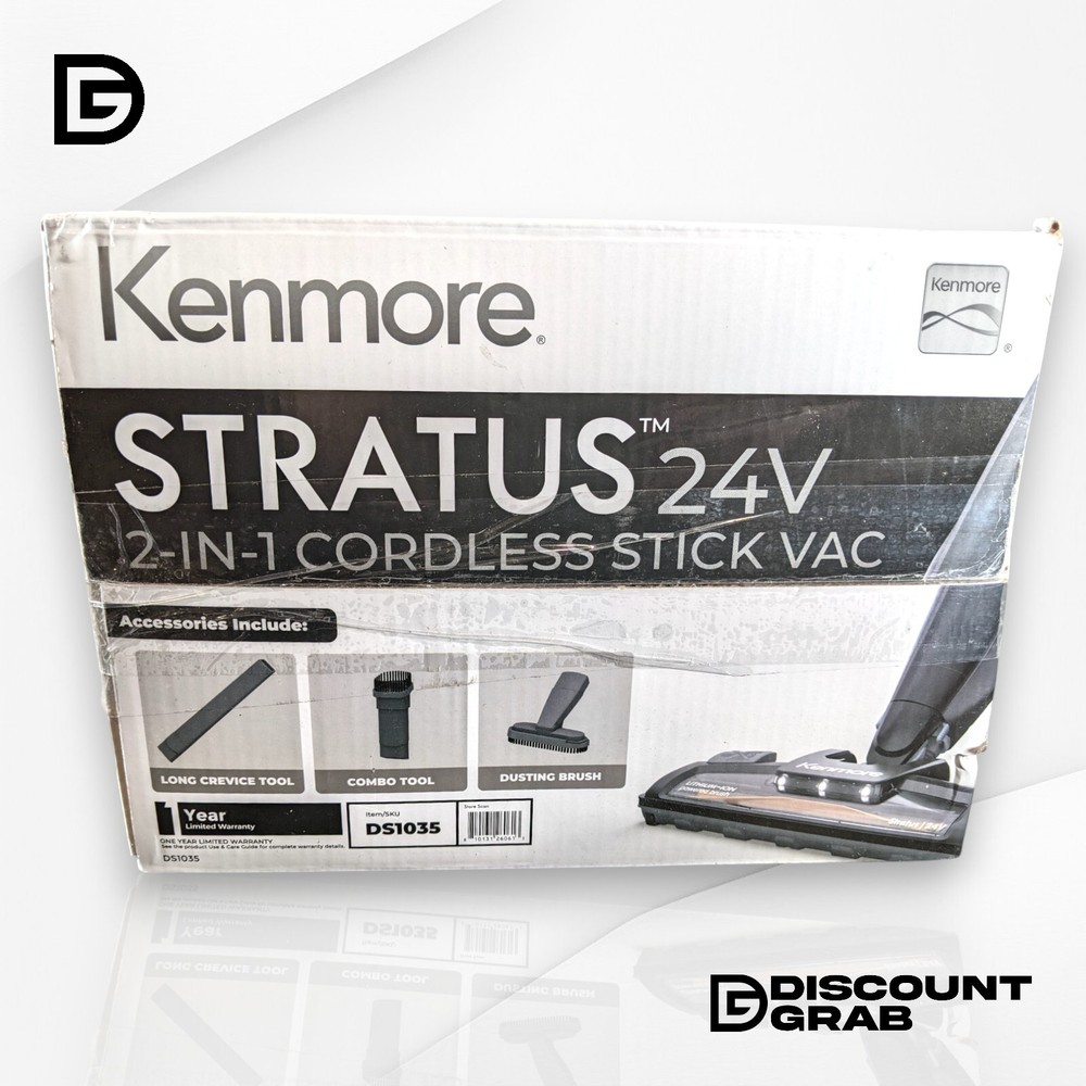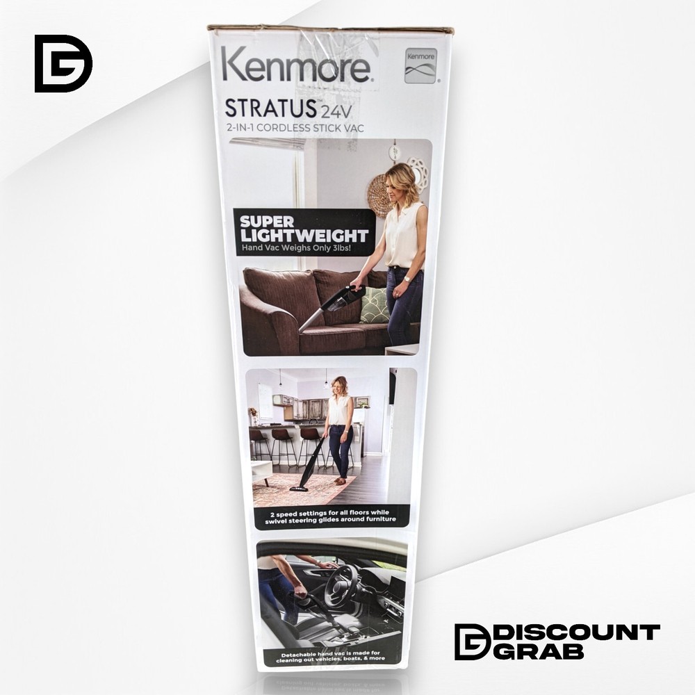 Kenmore Stratus | 24V 2-in-1 Cordless Stick Vacuum Product Description Kenmore Stratus | 24V 2-in-1 Cordless Stick Vacuum. The box has been opened for inspection, and the vacuum and its components are in new condition and all wrapped in plastic with original packaging. See photos. Product Features: Powerful 24V Suction: Provides strong and consistent suction for deep cleaning on carpets, hard floors, and upholstery. 2-in-1 Design: Easily converts from a stick vacuum to a handheld vacuum for versatile cleaning. Cordless Convenience: Enjoy hassle-free cleaning with up to 40 minutes of runtime on a full charge. Lightweight & Maneuverable: Designed for easy handling and effortless navigation around furniture and tight spaces. HEPA Filtration System: Captures 99.97% of dust, allergens, and particles for a cleaner home environment. LED Headlights: Illuminates dust and debris in dark corners and under furniture. Easy-Empty Dustbin: One-touch emptying system for a mess-free disposal. Multi-Surface Cleaning: Works efficiently on hardwood floors, tiles, low-pile carpets, and area rugs. Wall Mount Storage: Convenient docking station for easy storage and charging. Product Specifics Brand: Kenmore Type: Stick Policies Shipping We ship every day Monday - Friday. All orders ship the following business day. Top Rated We have sold over 145,000 items on eBay and counting! Returns We hope you love your purchase, however if you need to return it, we have a 30 day return policy. Please note that the item you receive may vary slightly from the one pictured. We strive to provide accurate representations, but due to factors such as manufacturing variations or availability, the condition and appearance of the product you receive might differ. We cannot guarantee that every item will match the exact one depicted in the photo. Rest assured, our commitment to delivering a high-quality product remains unchanged. If you have any concerns or questions, feel free to reach out to us before making your purchase. Your satisfaction is our priority. Questions? Have a question you need answered? Message us on eBay and we'll respond within 1 business day! We want you to be confident with your purchase and are here to help put your mind at ease. About Us We are a small eBay store based out of Indianapolis, IN. We aim to provide great products at an even better discount. We post new items daily and always have a great grab bag of items to choose from. We rarely offer the same thing twice and that is what makes our eBay store so much fun. If you have any questions or concerns please feel free to drop us a message here on eBay and we will get back to you within 1-2 business days. Suggested For You Tineco Floor ONE S5 Smart Cordless Wet Dry Vacuum Cleaner and Mop $289.99 DREAME L20 Ultra Robot Vacuum and Mop RLX41CE $549.99 Dreame DreameBot L20 Ultra Robot Vacuum & Mop w/ Auto-Empty & Self Cleaning $549.99 Ofuzzi H9 Pro Cordless Handheld Vacuum Cleaner (SEALED) $39.99 (SEALED) Ofuzzi H9 Pro Cordless Handheld Vacuum Cleaner. $49.99 (New) Ofuzzi H9 Pet Pro Cordless Handheld Vacuum Cleaner $39.99 (SEALED) Ofuzzi H9 Pro Cordless Handheld Vacuum Cleaner $39.99 Tineco iFloor 3 Compact Cordless Vacuum & Floor Washer (W/ Accessories) $199.99 Add suggested items to your listings - Check it out on 3Dsellers.com eBay listing template by 3D sellers.com - Try for Free!