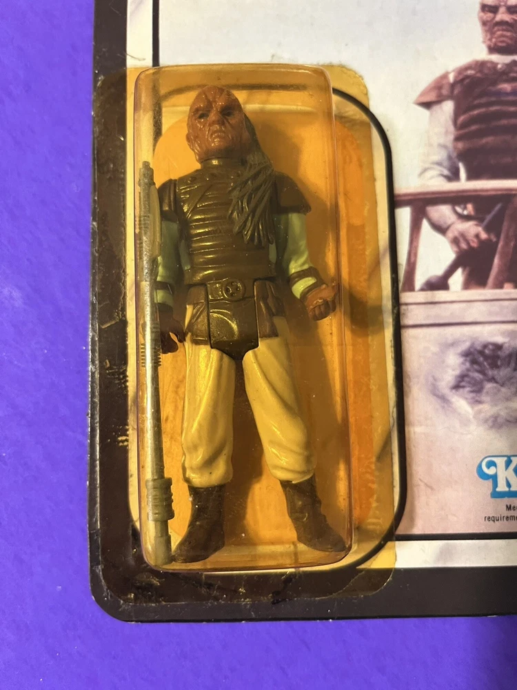 Kenner Star Wars RotJ Weequay - Jedi, Esb, Empire Strikes Back, Good condition LOOK AT ALL PICTURES FOR CLOSE DETAILS ON CONDITIONS CARD- very Minor creases , hanger unpunched , good color , firm card Image paper where torn off from past is repaired ( mainly behind figure) BUBBLE BLISTER- NO DENTS CRACKS , Has YELLOWING - RE- Sealed solid to card GREAT FOR DISPLAY OR ANY STAR WARS COLLECTION SEE ALL MY OTHER LISTINGS AS WELL SALES ARE FINAL - NO RETURNS REFUNDS SHIPPED ASAP - SHIPPING INSURANCE INCLUDED