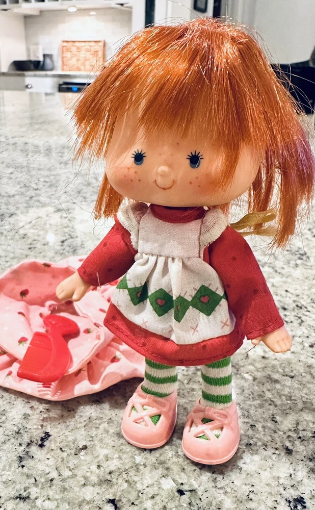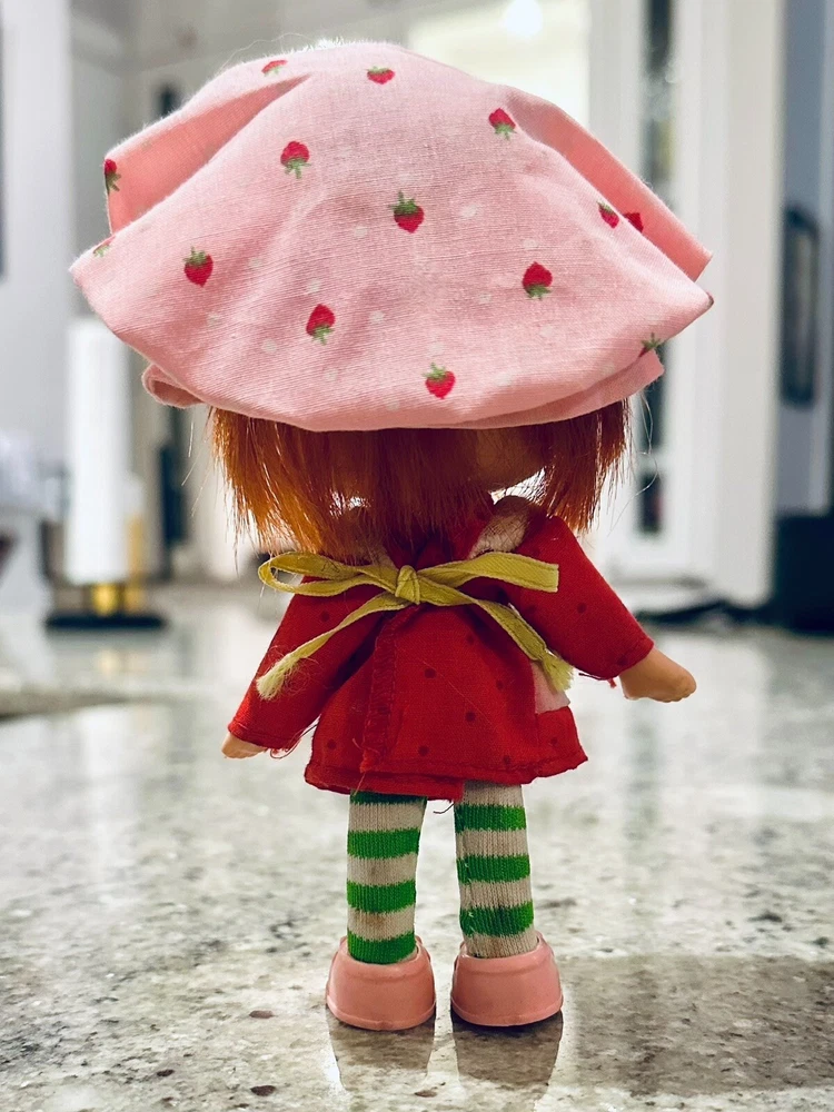 This Kenner Strawberry Shortcake doll figure is a first edition from 1979, making it a wonderful addition to any collection. The doll has red straight hair, blue eyes, and a light complexion. It comes with clothes, hat, shoes, and a comb. Comb is missing one tooth. Ships from Dallas, Texas.