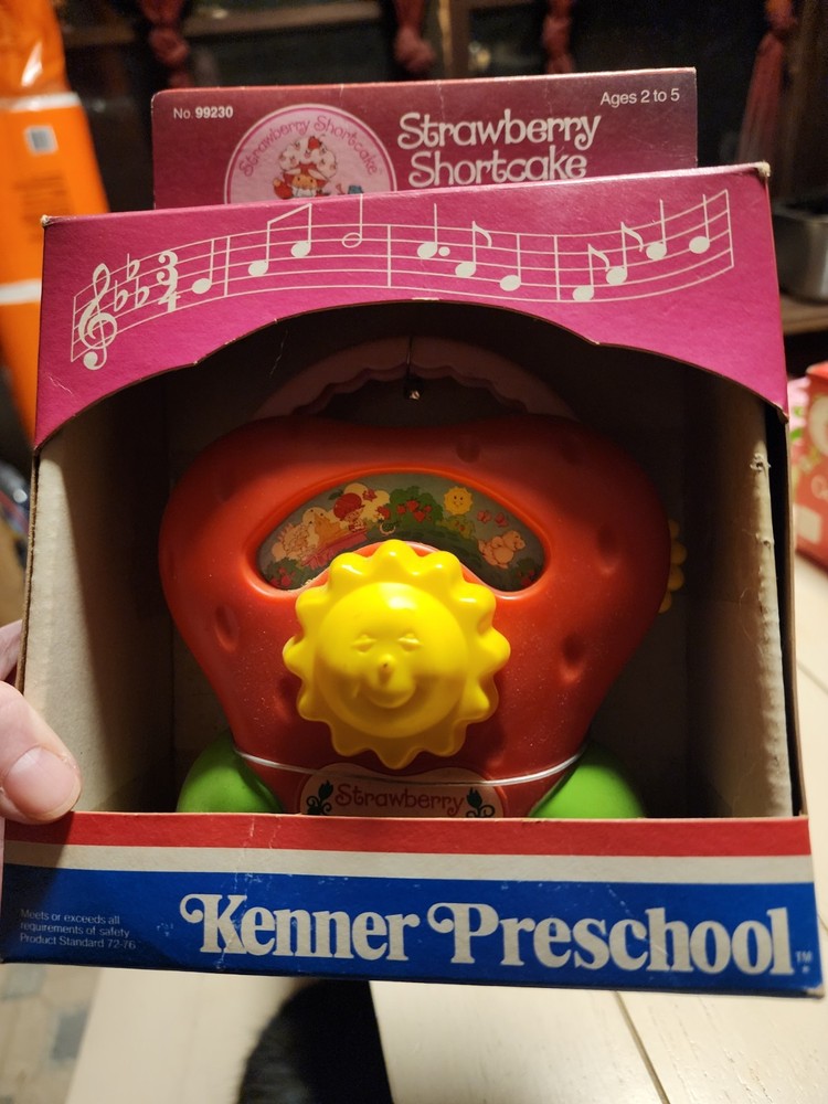 Strawberry Shortcake Music box for baby by Kenner. Still in original packaging. This is from my Mother-in-law's private collection.