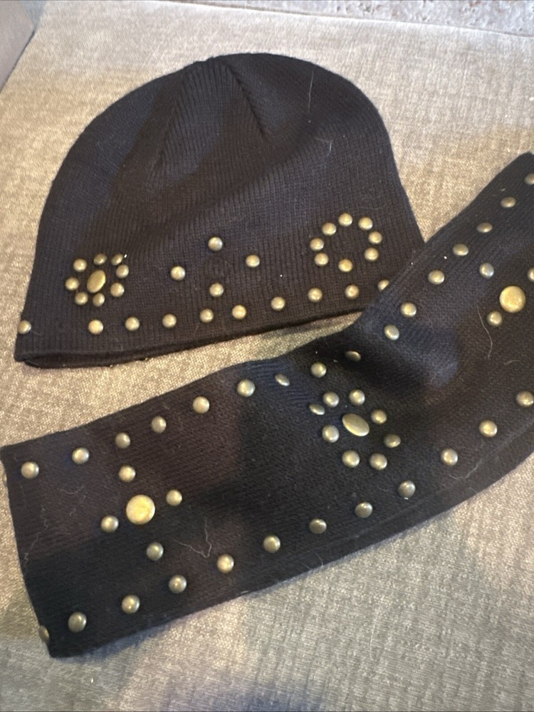 Kenneth Cole Black Studded Beanie and Scarf Set