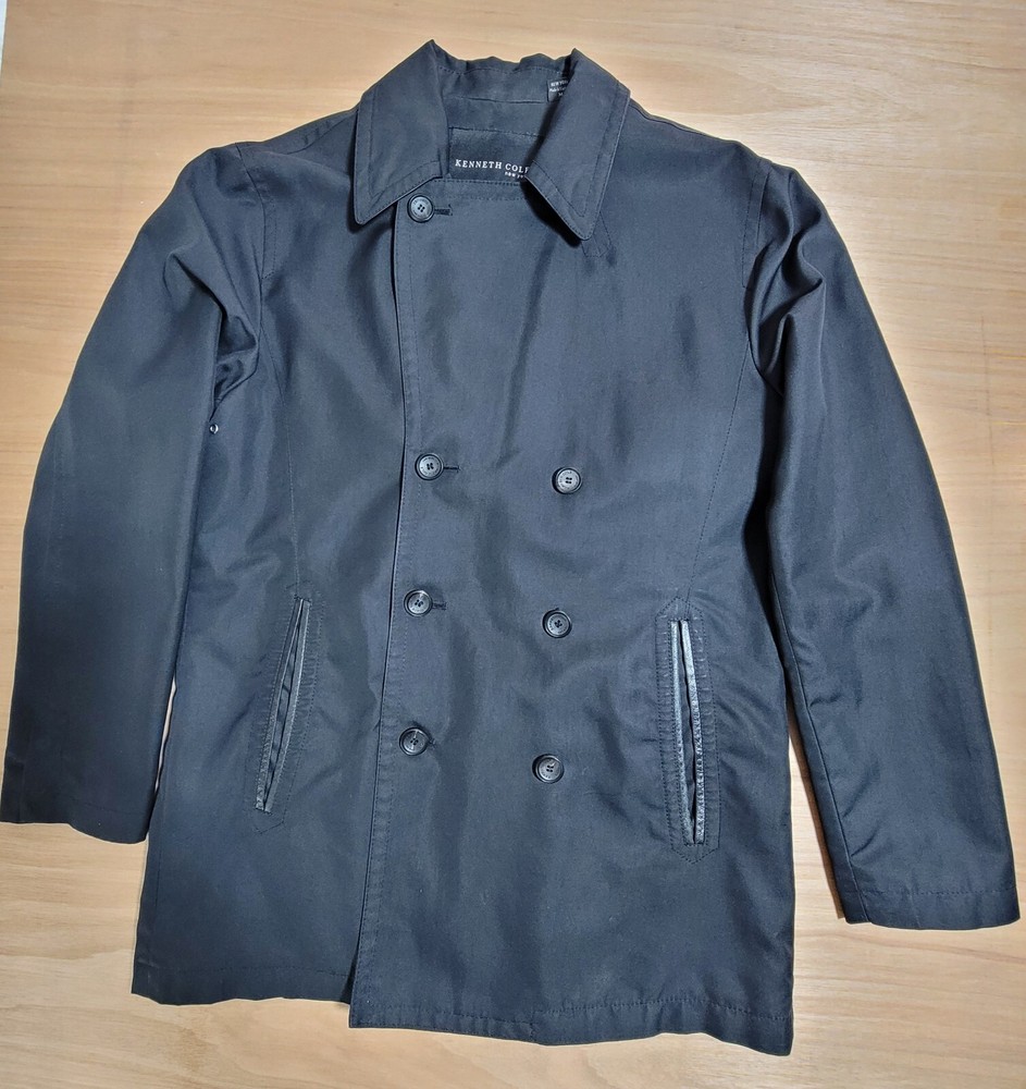 Kenneth Cole Pea Coat Jacket Men M Black Button Double Breasted Some light wear, see photos for more details.