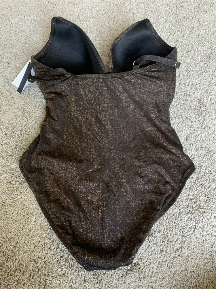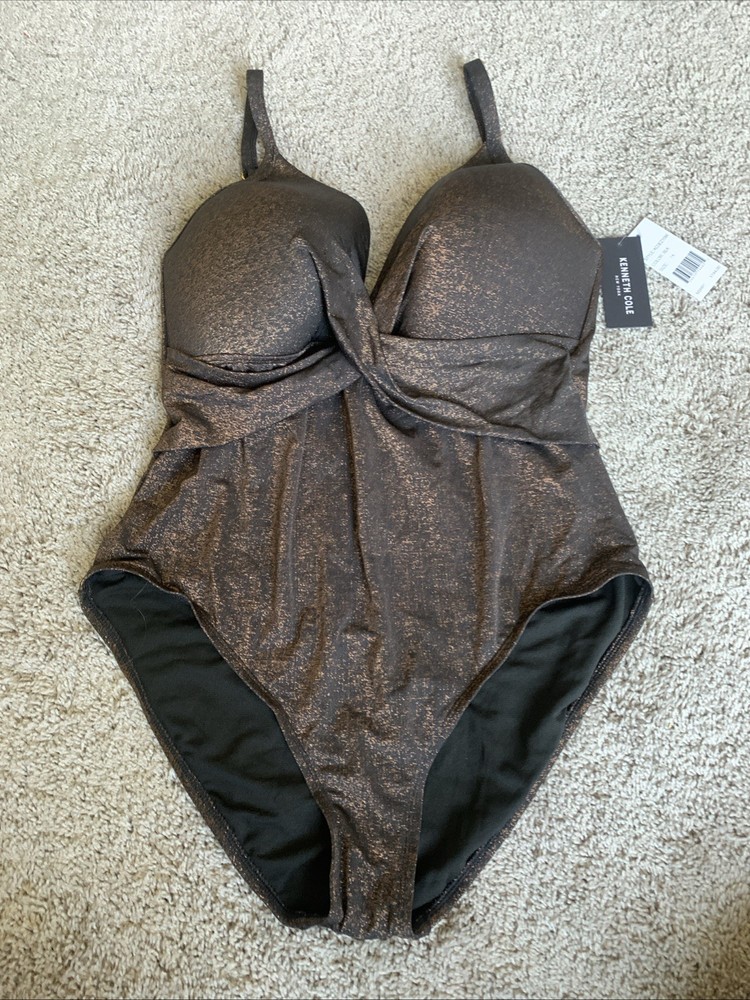 Kenneth Cole New York Metallic Black One Piece Swimsuit Size 1X NWT. Condition is New with tags. Shipped with USPS Ground Advantage.