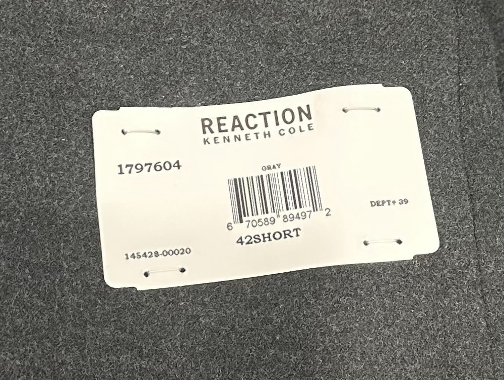 Kenneth Cole Reaction Men's Classic Overcoat Jacket Size: 42 Short Color: Gray Content: 95% Polyester / 2% Spandex / 3% Rayon