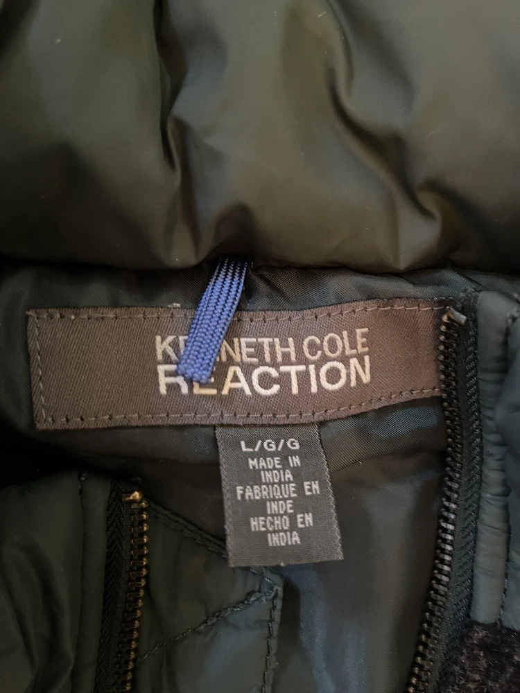 Kenneth Cole Reaction Mens Large Size Navy Blue Puffer Green Down Adult Full Zip