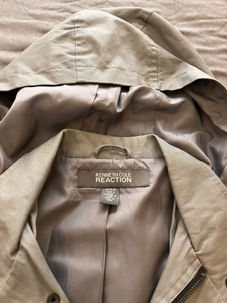 This Kenneth Cole Reaction jacket is the perfect addition to any wardrobe. It features a stand-up collar and full zipper closure for maximum protection against the elements. The gray color and solid pattern make it a versatile piece that can be worn for any occasion, whether it's a party, cocktail event, or casual outing. Made from a blend of cotton and polyester fabrics, this jacket is both durable and comfortable. It has pockets for added convenience and can be machine washed for easy care. The jacket is designed for men in size medium and is part of the Kenneth Cole Reaction Full Zip product line. With its classic logo theme and outdoor focus, this jacket is perfect for those who love to go out and explore. May show signs of normal wear, free of major rips/stains/odors.