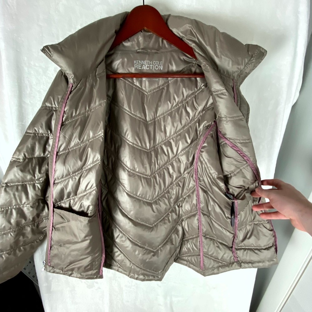 Kenneth Cole Reaction Puffer Jacket Womens Large Grayish-Brown Pockets Full Zip Description Kenneth Cole Reaction Puffer Jacket Womens Large Grayish-Brown Pockets Full Zip. Product Detail • Brand : Kenneth Cole • Department : Women • Color : Grayish-Brown • Type: Jacket Please message me if you have any questions.