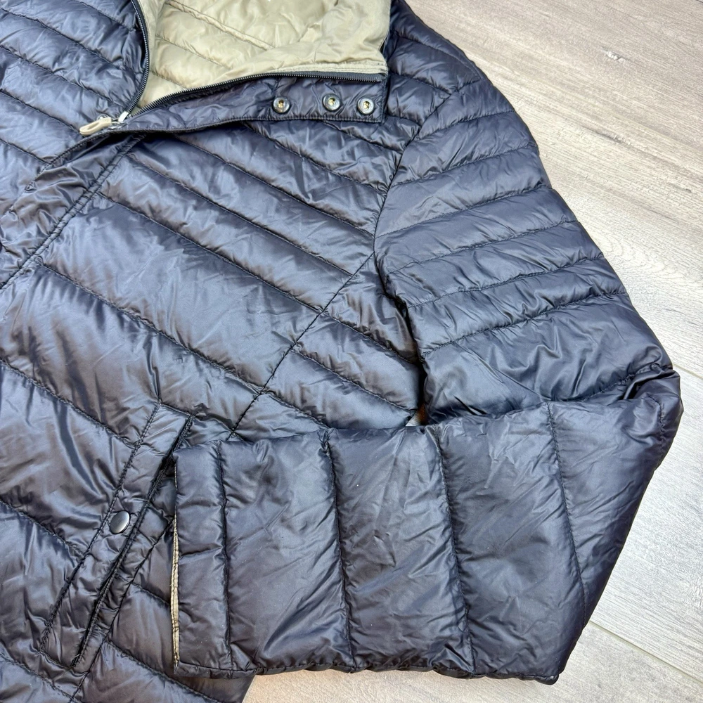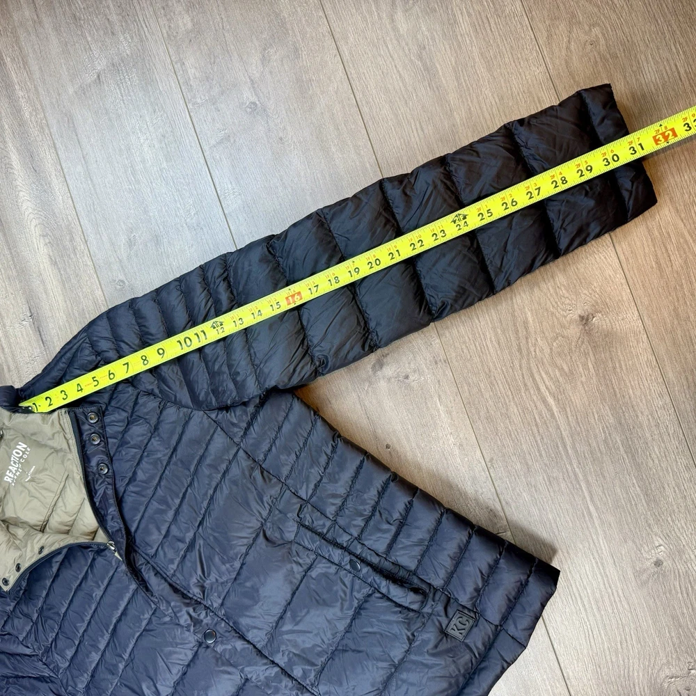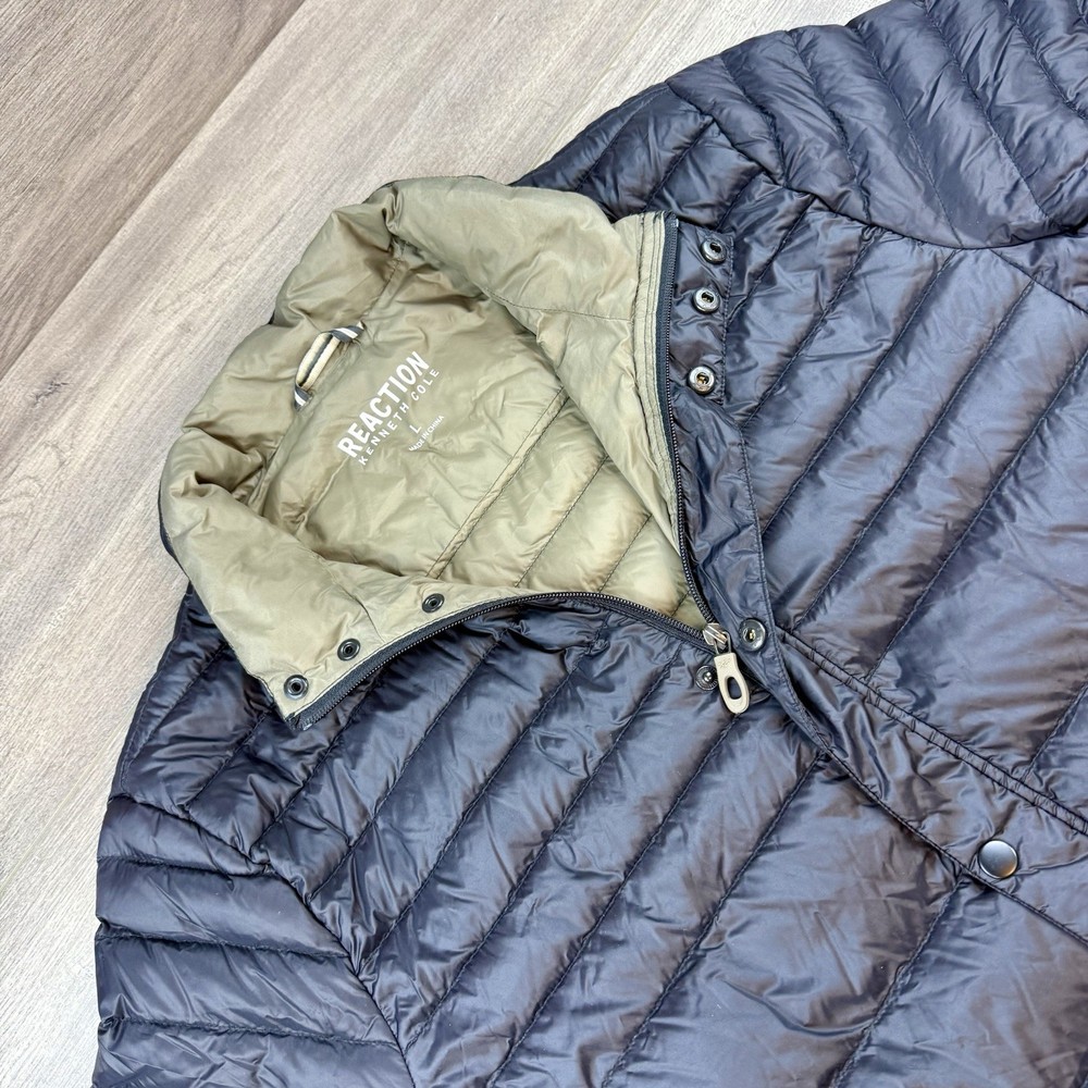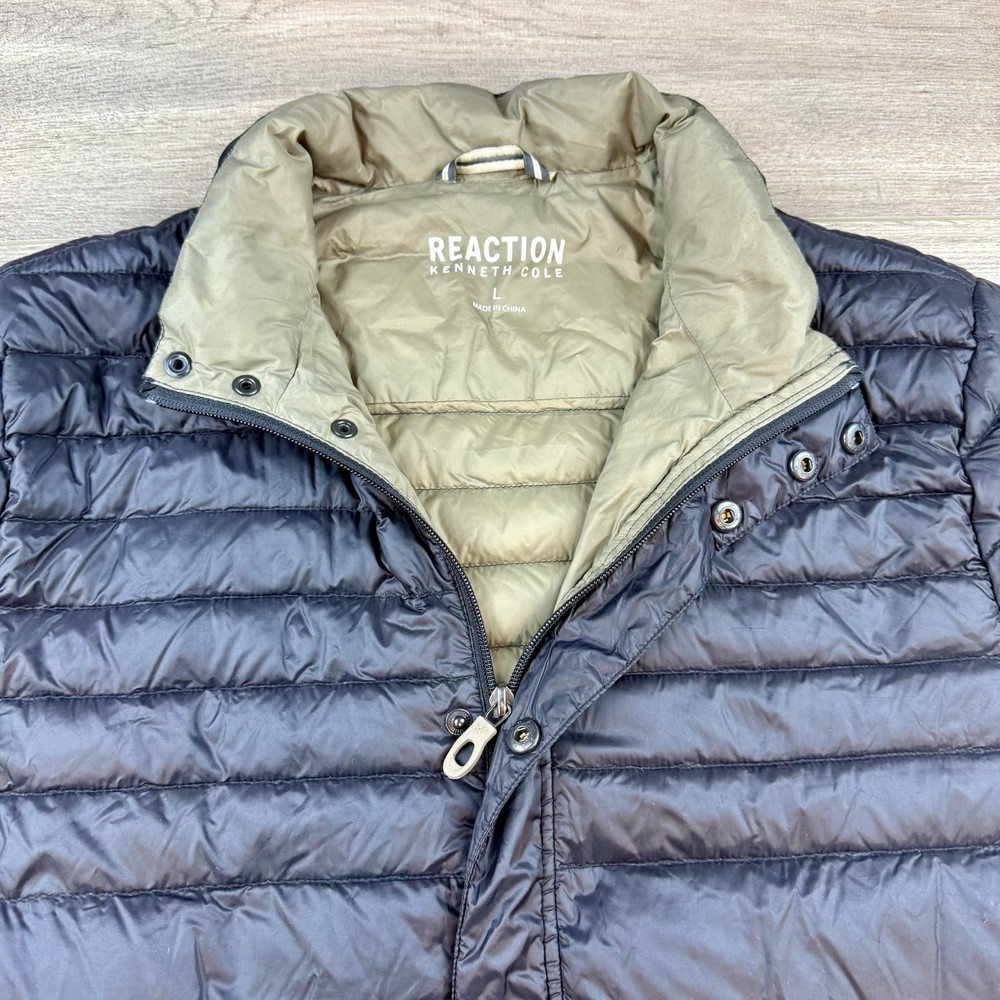 The Kenneth Cole Reaction Puffer Quilted Duck Down Coat is a stylish and functional outerwear piece for men. Made with a nylon outer shell and insulated with down, this mid-length coat provides warmth and protection in cold weather. The full zip and snap closure, along with its windproof and water-resistant features, make it ideal for travel and casual occasions. The classic black color and solid pattern give it a timeless and designer appeal, perfect for outdoor activities in winter, fall, and spring. Easy to care for with machine washable instructions, this coat is a versatile and practical addition to any man's wardrobe. Men's Large Black Lightweight Winter Thermal Pockets Water Resistant Windproof Please see pictures for condition and size measurements. Thanks!