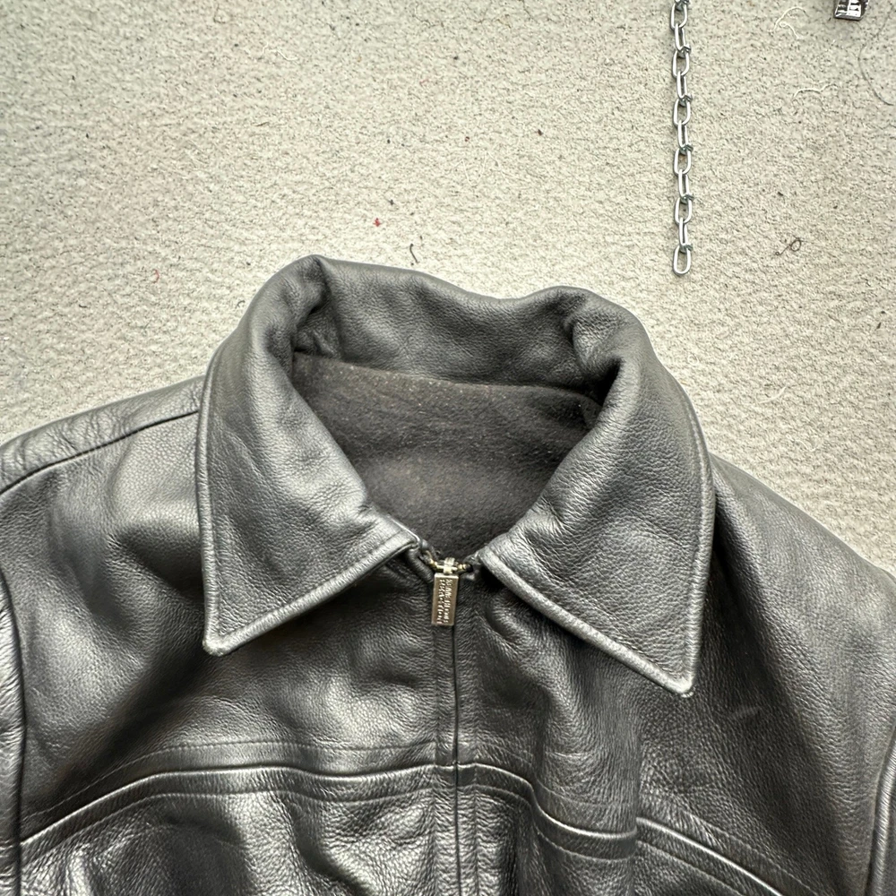 Kenneth Cole Reaction Reversible Leather Jacket Mens Large Black Polyester Gray Full Zip NEEDS DRY CLEAN Measurements included in the photos Please review all measurements to ensure an expected fit Used Condition We ship daily so expect a quick delivery Please feel free to ask any questions you may have