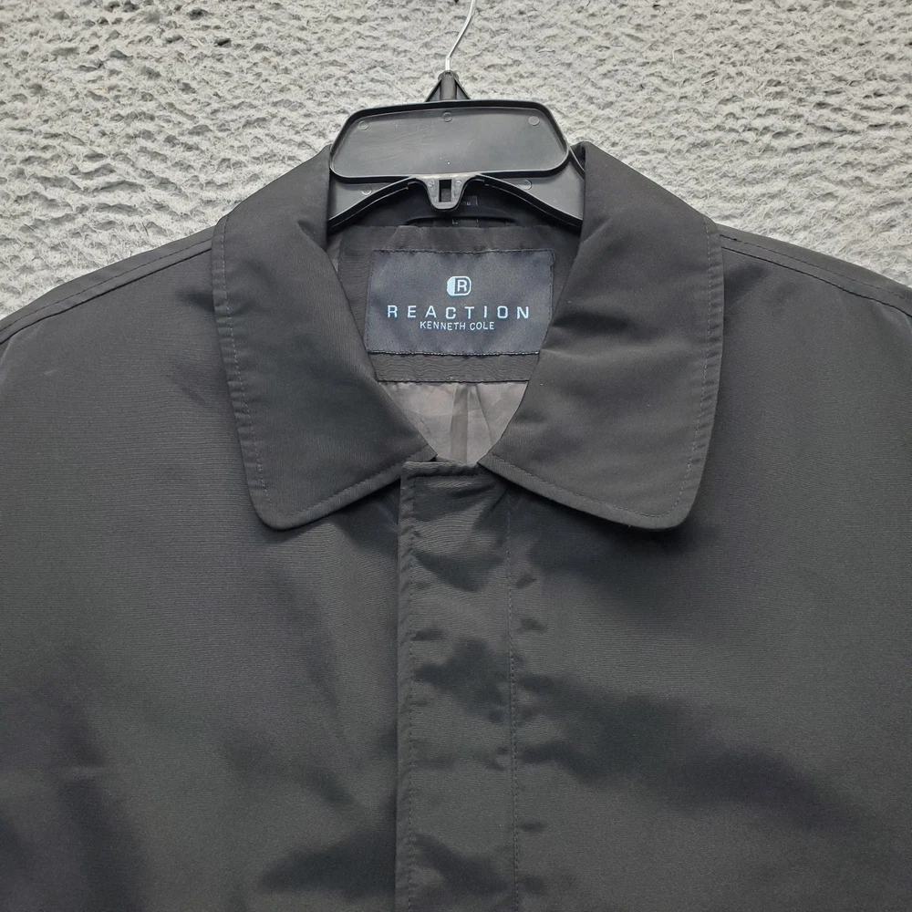 Kenneth Cole Reaction Windbreaker Jacket Men Large Black Rain Resistant Full Zip. Size : Mens Size L Measurements : Chest (Pit to Pit) : 23.25" Length (Shoulder to Bottom) : 28.75" Condition : Pre-owned Shipping : I will ship this item out within 24 hours and in most cases the same day with a tracking number for confirmation. I ship items out EVERY DAY so EXPECT a QUICK delivery! Please feel free to ask any questions you may have. I answer most questions instantly! SKU: 49275 All Clothing Items Have Been Cleaned or Steamed Per Policy