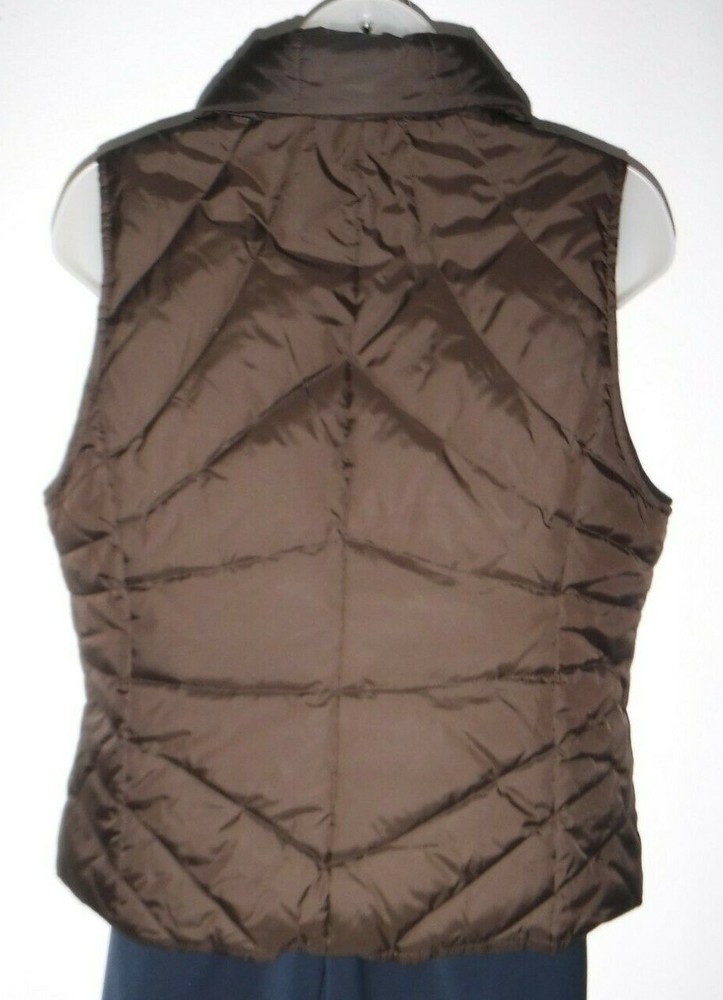 Women's Large brown down fill quilted full zip vest (Kenneth Cole Reaction) in good condition. Underarm to underarm is 20 inches. Length from back collar seam to bottom of of vest is 22 inches. Very nice vest.... Feel free to ask questions. I am happy to combine shipping. Thanks for looking!