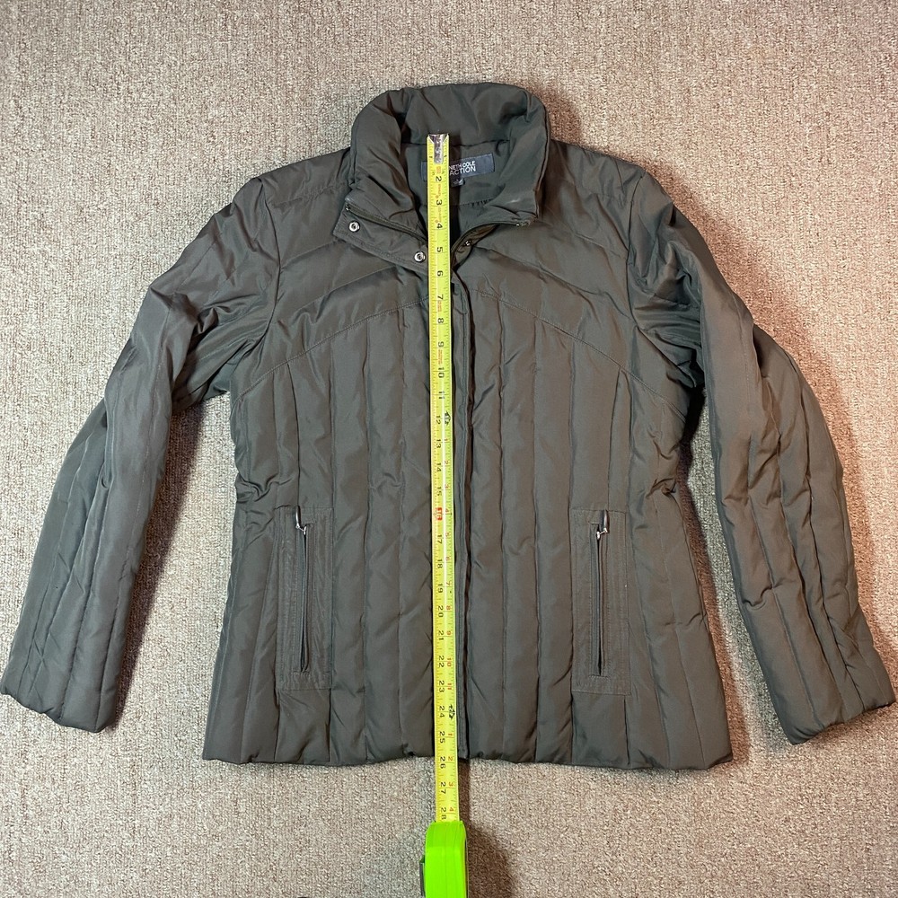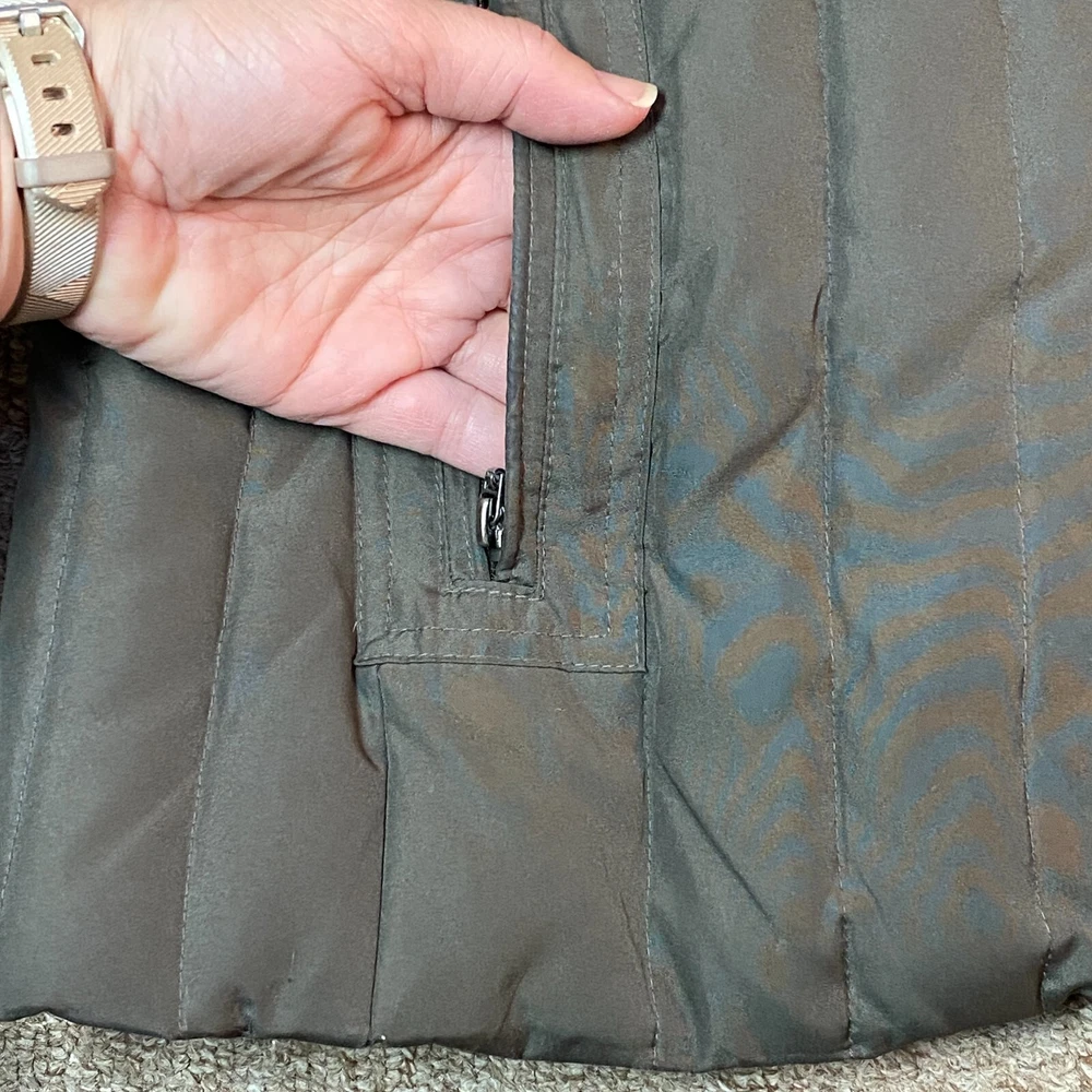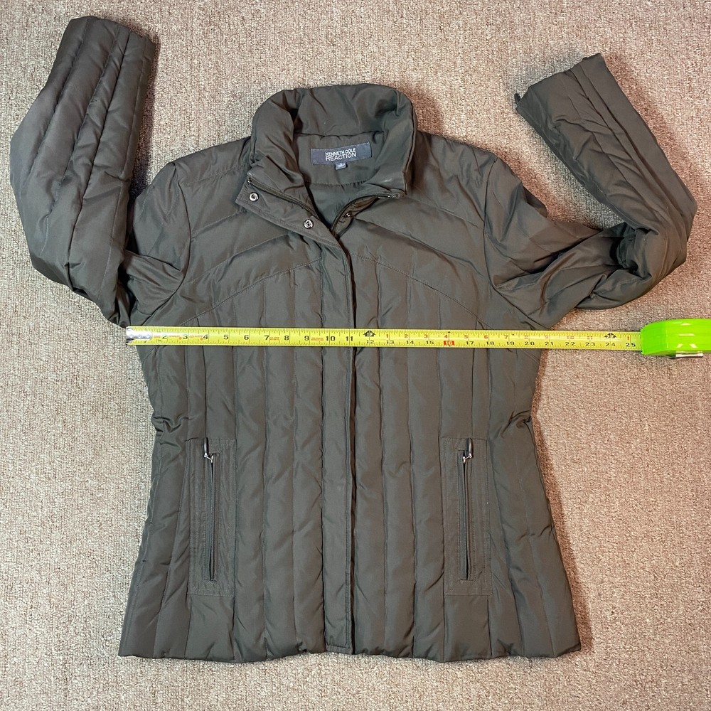 This Kenneth Cole puffer jacket is a total game-changer for cold weather! The olive green shade is so versatile and stylish, while the down and feather filling keeps me incredibly warm without feeling bulky. I love the softshell fabric—it’s surprisingly lightweight yet durable, and the full-zip design makes it easy to layer. The zippered pockets are a nice touch for keeping hands or small essentials secure, and the polyester lining adds extra comfort. Whether I'm running errands or heading out for a winter hike, this jacket has become my go-to. Perfect fit for a regular large, and the short length is flattering. Absolutely worth it!