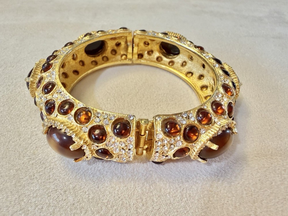 $ 11.09Vintage Jade Hindged Braclet 14k Gold Etched