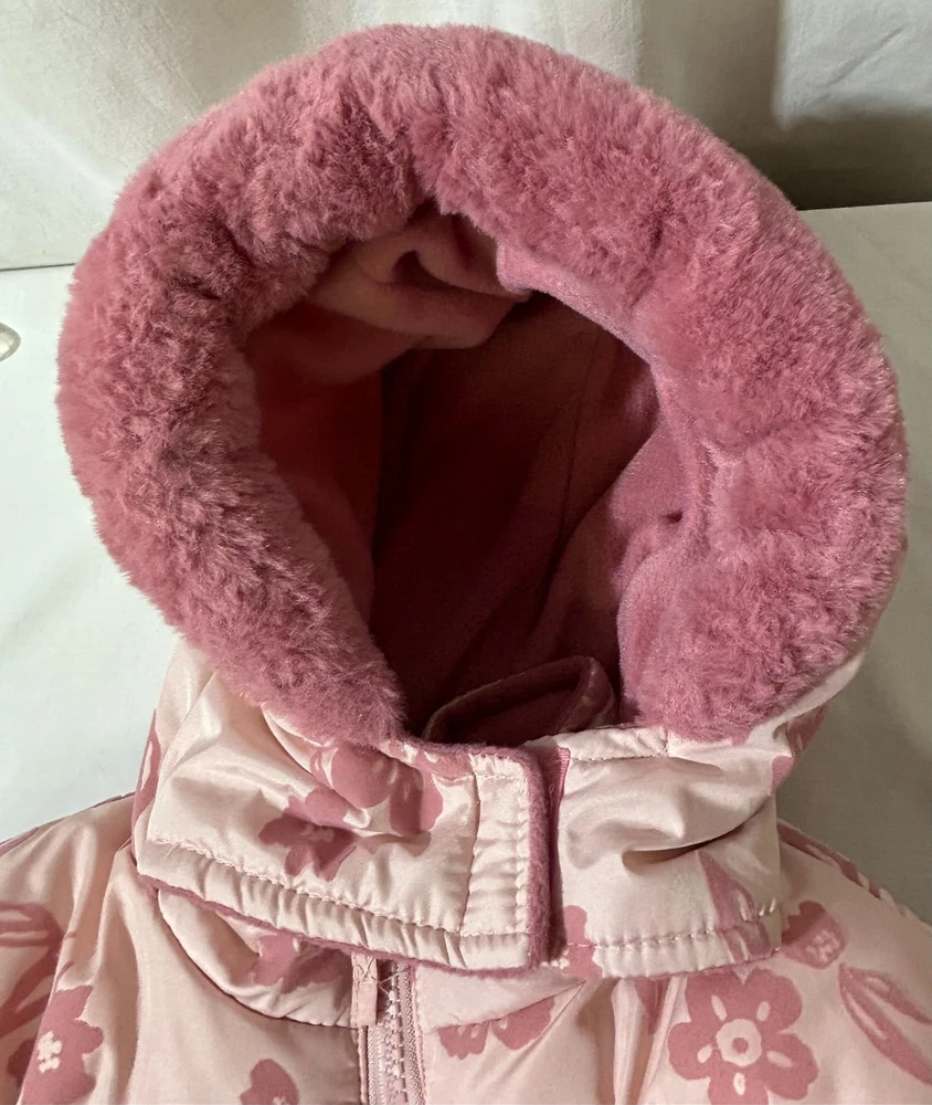 $ 13.2Carrousel Girls Fleece Coat Size 5 Pink Floral Polka Dot Hooded Jacket NWT