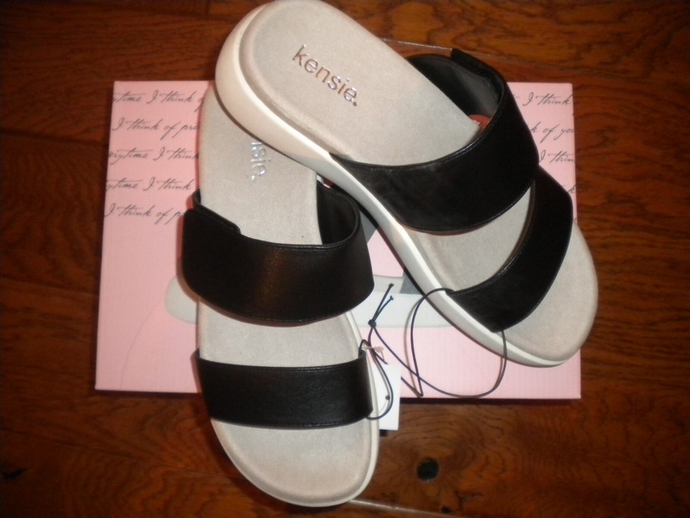 New with box. Kensie Women's Size 11 Jipsy Black Adjustable FIt Sandals NWB Slip on. Adjustable strap. Arch Support. Heel about 1". Length along the bottom about 11 3/4". Weighs about 2b 1oz. Will ship in box with bag. Buy with Confidence I have over 25,000+ Positive Feedbacks. Measurements are approximate and can vary depending on where they start and end. I cannot guarantee fit but I try and give as much information as possible to help you make a great Purchase. Shipping is based upon weight (which I provide in all listings) and the Shipping Option you choose, 4 options are available. The shipping offered is my Discounted Rate passed onto you the Buyer. Shipping daily. Please understand that I do my best to describe color. I can't guarantee that my Color will be your exact Color since Monitors and Opinions Vary. Offers are considered on certain items, use the "Best Offer" button. Sorry, I DO NOT ACCEPT RETURNS, feel free to ask questions. Each month I select a Charity to Donate to for many of my listings. I try to use recycled Shipping Materials whenever possible. Your Business is appreciated and if you like what you see, browse my Store to find more items you will love. Add me to your Favorites as New items are added Daily. Thank you! b5