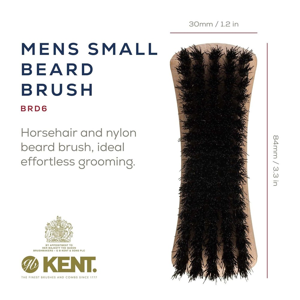 Kent BRD6 Small Travel Men's Beard and Mustache Brush, Natural Boar Bristle for Flawless Shaping and Grooming. Ergonomic Grip Wood Handle. Dry or Wet Beard, Distributes Oils and Balms. Made in England
