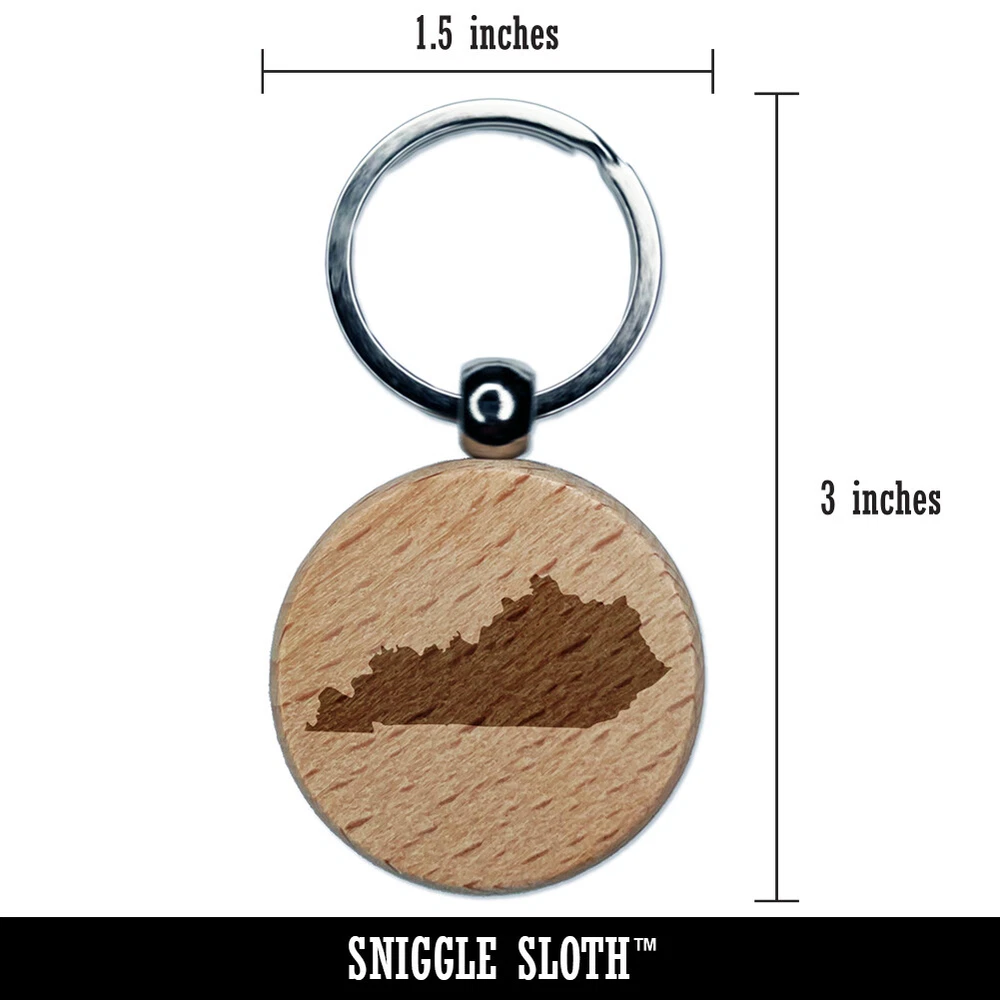 Kentucky State Silhouette Engraved Wood Round Keychain Tag Charm