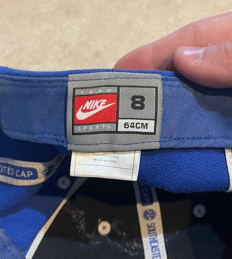Show off your love for the Kentucky Wildcats with this Nike fitted hat cap. The blue cap features an embroidered design with the team's logo and name, making it the perfect accessory for any fan. It's officially licensed and made from high-quality materials, ensuring that it will last for years to come. This cap is perfect for basketball fans, especially those who support the Kentucky Wildcats. It's designed for men and comes in size 8, making it a great gift for any fan. The hat is perfect for regular season games and is sure to turn heads during the NCAA Tournament. Get yours today and show off your love for the Kentucky Wildcats! This hat is in worn preowned condition with some staining on the inside brim of the hat. Please see ALL photos for a better idea on condition, and any details to the hat.
