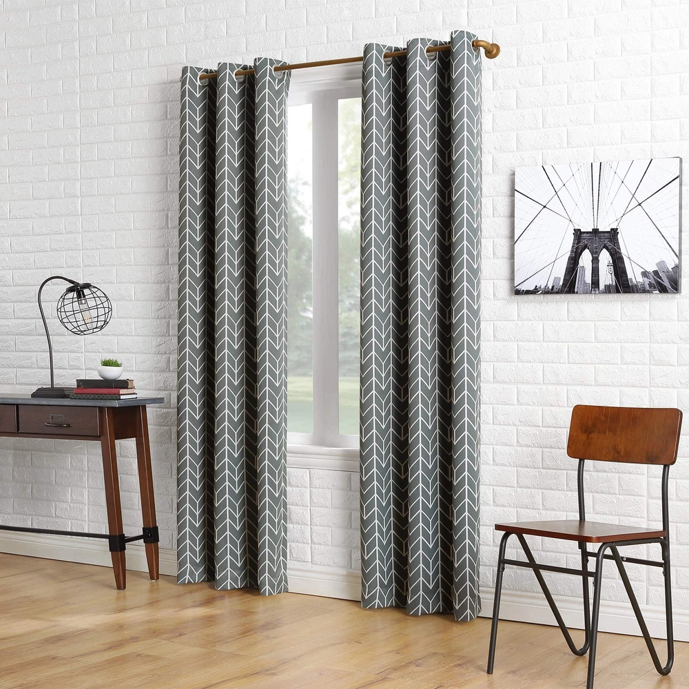 Chevron geometric design adds sophistication to any room of your home Thermal properties help keep summer heat and winter chill out of your home Blackout technology blocks out most unwanted light while enhancing privacy