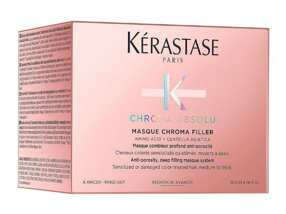 AFFORDABLE US AND CANADA EXPEDITED SHIPPING Kerastase Chroma Absolu Masque Chroma Filler 200 ml/ 6.76 oz *NEW IN BOX*. Description: This fortifying mask for color-treated and damaged hair deeply nourishes and conditions to maintain hair health and color vibrancy while enhancing shine. Hair Type: Fine, Medium, and Thick Hair Texture: Straight, Wavy, and Curly Hair Concerns: – Safe for color-treated hair – Damage, split ends, and breakage – Dry hair Key Benefits: – Deeply nourishes to leave a brilliant shine – Improves hair health by strengthening and softening – Preserves and protects color vibrancy Highlighted Ingredients: – Amino Acid, Lactic Acid, and Tartaric Acid: A blend of healing acids that target all three levels of hair damage and penetrate the hair to repair all damage caused by coloring and prevent color from fading or fading. (This particular product is formulated with Amino Acid and Centella Asiatica.) Additional Information: This mask deeply strengthens and rebuilds hair damaged by color treatments, preventing future breakage. Formulated with amino acids, it nourishes and hydrates to help preserve color vibrancy and soften hair. Infused with reparative acids, this mask leaves hair healthier and shinier, and protects against color-damaging environmental aggressors. Clinical Results: In a controlled study using a Chroma Absolu Masque system versus a non-conditioning shampoo, results showed: – 92% had stronger hair In a controlled study using Chroma Absolu Masque versus untreated hair: – 93% had softer hair In a controlled study using a Chroma Absolu Bain Riche, Soin Acide, and Masque system versus untreated hair: – 62% had shinier hair Show more Ingredients -Amino Acid, Lactic Acid, and Tartaric Acid: A healing acid blend that targets the three levels of hair damage and penetrates to recover hair from all types of color-induced damage and prevent color stripping or fading. (This specific product is formulated with amino acid and Centella asiatica.) Aqua/Water/Eau, Cetearyl Alcohol, Amodimethicone, Behentrimonium Chloride, Cetyl Esters, Isopropyl Alcohol, Peg/Ppg/Polybutylene Glycol-8/5/3 Glycerin, Trideceth- 6, Phenoxyethanol, Arginine, Citric Acid, Cetrimonium Chloride, Chlorhexidine Dihydrochloride, Linalool, Limonene, Sodium Hyaluronate, Centella asiatica Extract, Lactic Acid, Ci 17200/Red 33, Ci 19140/Yellow 5, Parfum/Fragrance. Instructions for use Suggested Use: – After cleansing with Chroma Absolu Shampoo (sold separately), apply a small amount to hair from mid-lengths to ends. – Leave on for five minutes. – Rinse thoroughly.