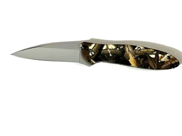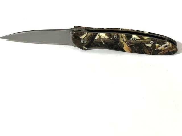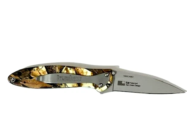 For Sale Kershaw Leek 1660CAMO Pocket knife Linerlock Aluminum Handle great condition. " Knife is barely used and it is in great condition" Features: -Flipper and thumb studs with assisted opening. -Bead-blasted Wharncliffe blade made from 14C28N stainless steel. -Liner lock for secure lock-up. -Foliage camo aluminum handle scales. -Pocket clip for tip-down and tip-down carry. Thanks for looking and please check more our great items. Please let us know if you have any questions or concerns prior to purchasing. We are providing FREE FAST SHIPPING ------------------------------------------------------------------------------------------