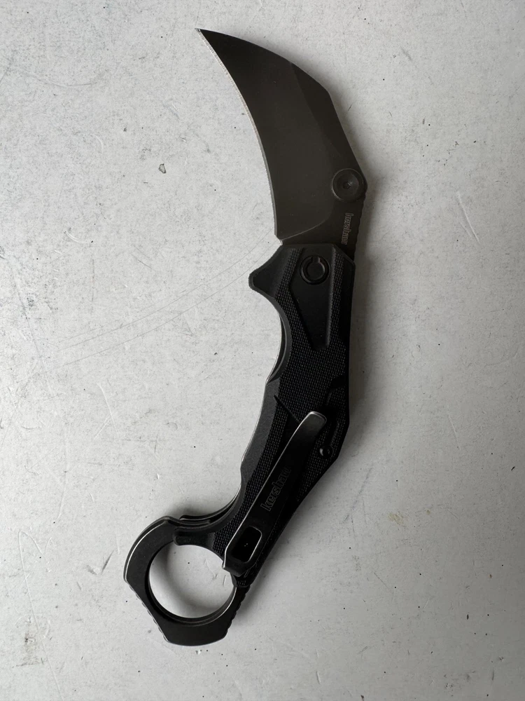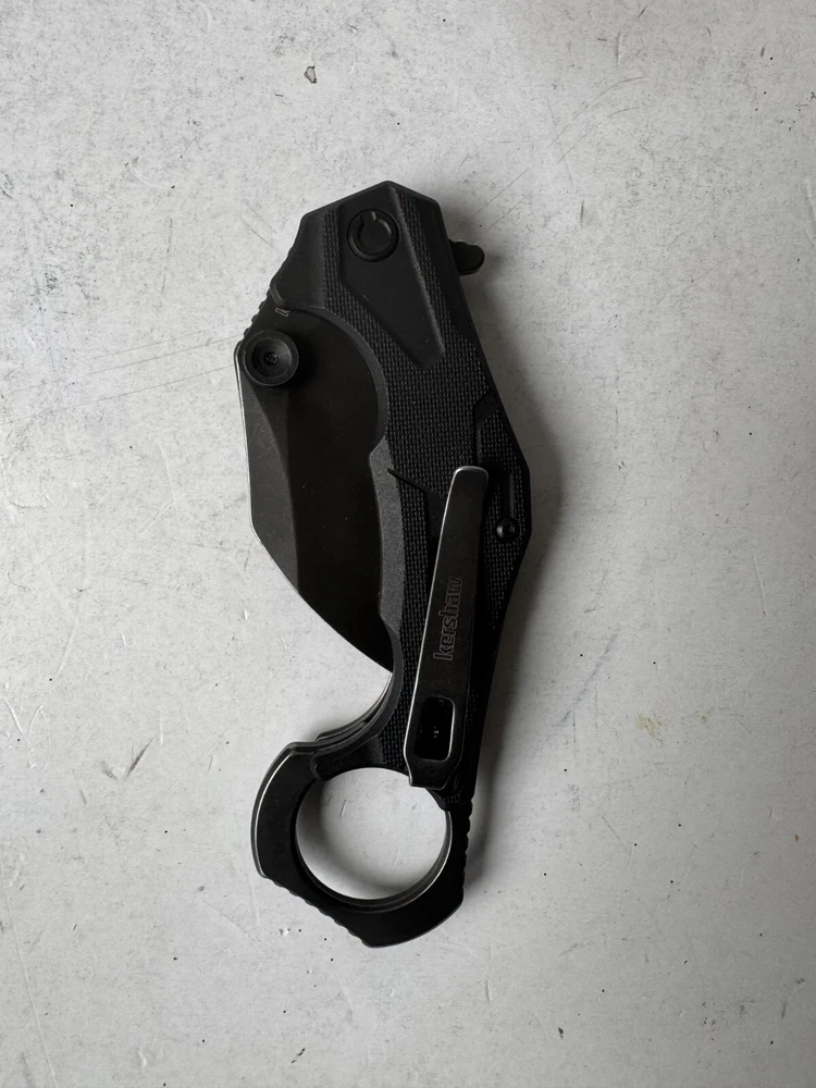 Kershaw Outlier Folding Pocket Knife Linerlock 2.6" Karambit Blade Black Handle Description Kershaw Outlier Folding Pocket Knife Linerlock 2.6" Karambit Blade Black Handle. Product Detail • Brand : Kershaw • Blade Material : Stainless Steel • Blade Color : Black • Type : Pocket Knife Please message me if you have any questions.